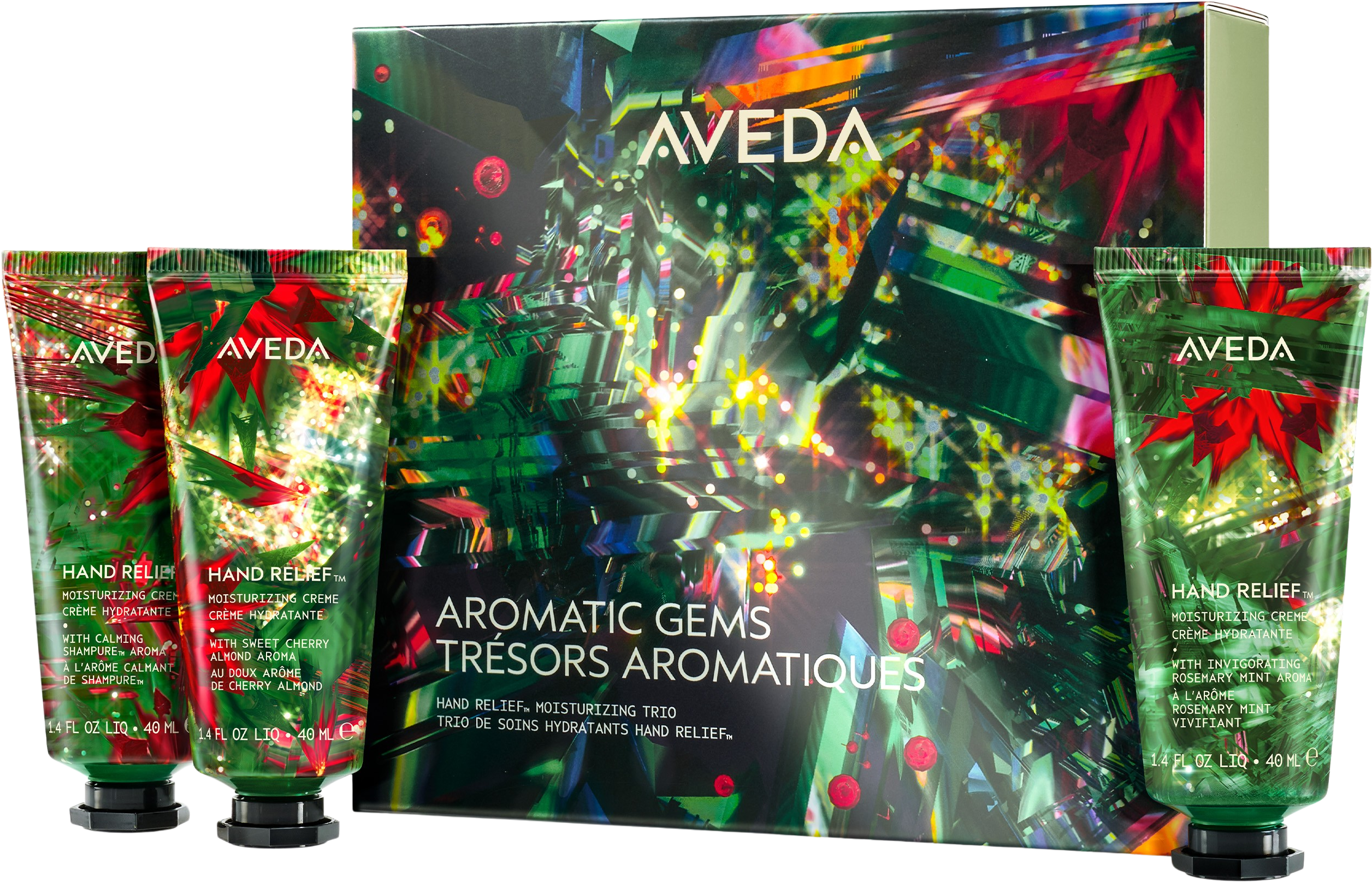 Das limitierte Aromatic Gems Set von Aveda verwöhnt deine Hände mit drei reichhaltigen Cremes in den verführerischen Aromen Shampure, Rosemary Mint und Cherry Almond. Die Cremen ziehen rasch ein, spenden intensive Feuchtigkeit und hinterlassen ein weiches, geschmeidiges Hautgefühl. Die drei Produkte kommen in einem eleganten Verpackungsdesign, inspiriert durch die schönen Farben der Nordlichter - perfekt für dich oder als Geschenk für deine Liebsten!