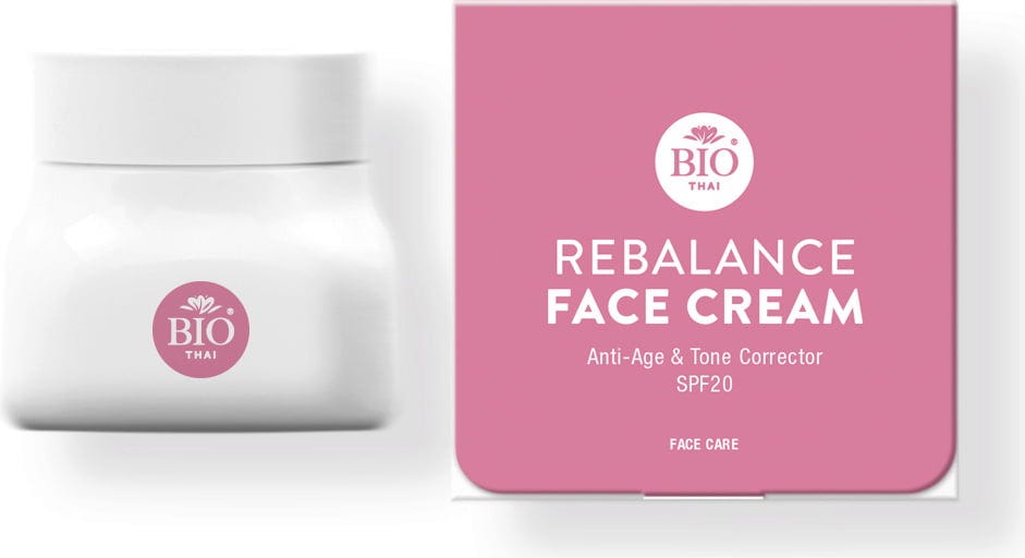 We proudly present: Die wunderbare Rebalance Face Cream von Bio Thai! Diese Creme ist eine wirksame Anti-Aging-Behandlung, die zudem Hautverfärbungen (Dyschromie) korrigiert. Ganz "nebenbei" schützt die Gesichtscreme auch vor Freien Radikalen und bietet der Haut einen Sonnenschutz.