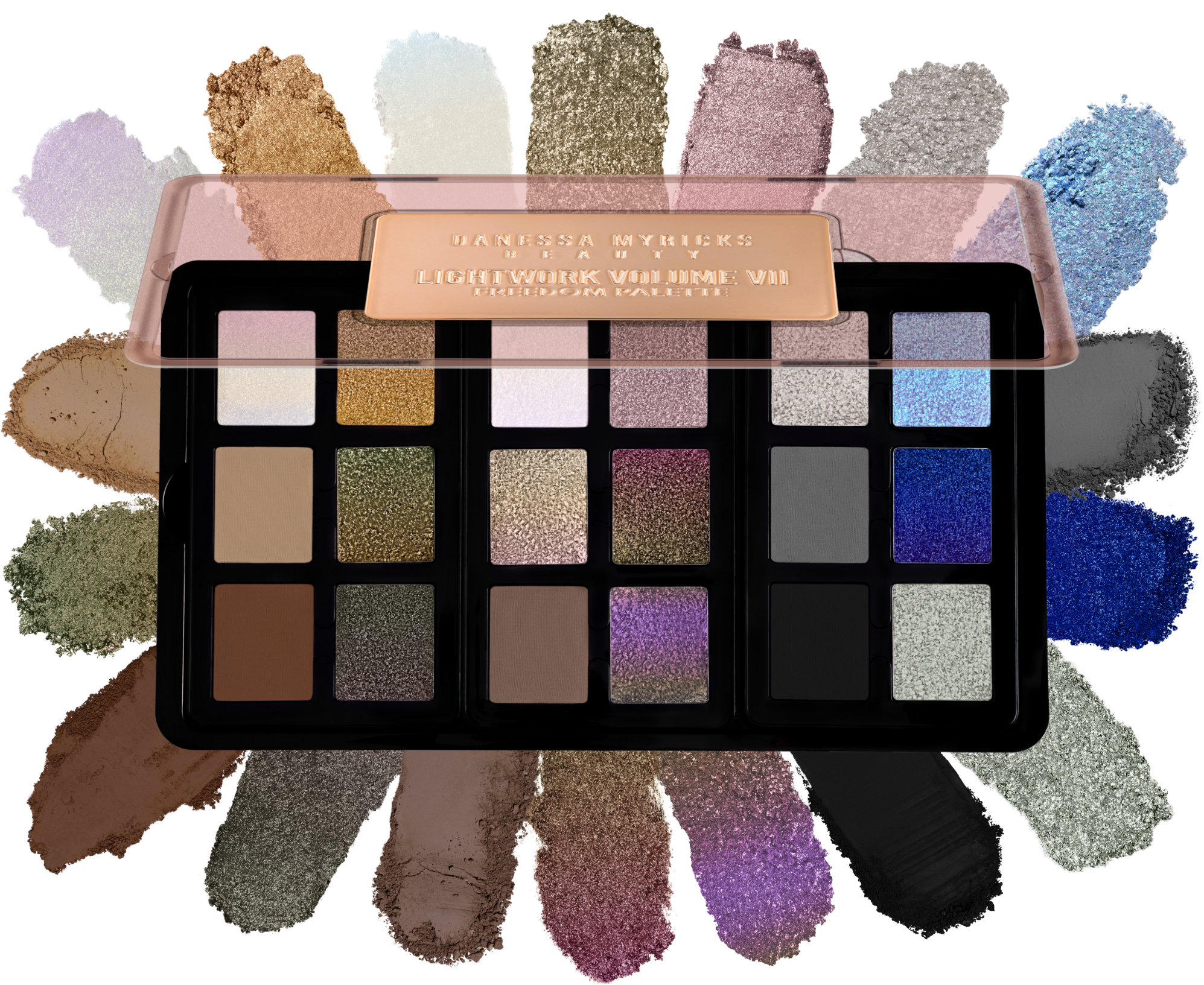 Die Lightwork Volume VII Freedom Palette von Danessa Myricks ist eine mit ikonischen Farben besetzte Make-up Palette, die für das ganze Gesicht, auch für die Lippen verwendet werden kann. Die Kollektion ist mit Basistönen und Nuancen ausgestattet, die von dezentem Glitzer bis zu kräftigem Glanz reichen. Kreiere unendlich viele und vielseitige Finishes in einzigartigen Farbtönen und staune über die Magie der Verwandlung. Die Palette ist zum Mischen, zum Bewegen und für jeden gemacht - egal ob Profi oder Anfänger.