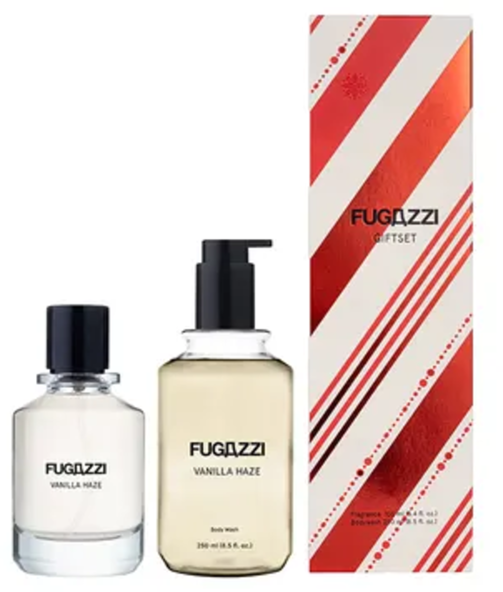 Das Vanilla Haze Set von Fugazzi beinhaltet ein Eau de Parfum und ein Waschgel, welche in einer hübschen Geschenkbox verpackt sind. Beschenk dich selbst oder mach deinen Liebsten eine Freude mit den zwei wunderbar duftenden Produkten!