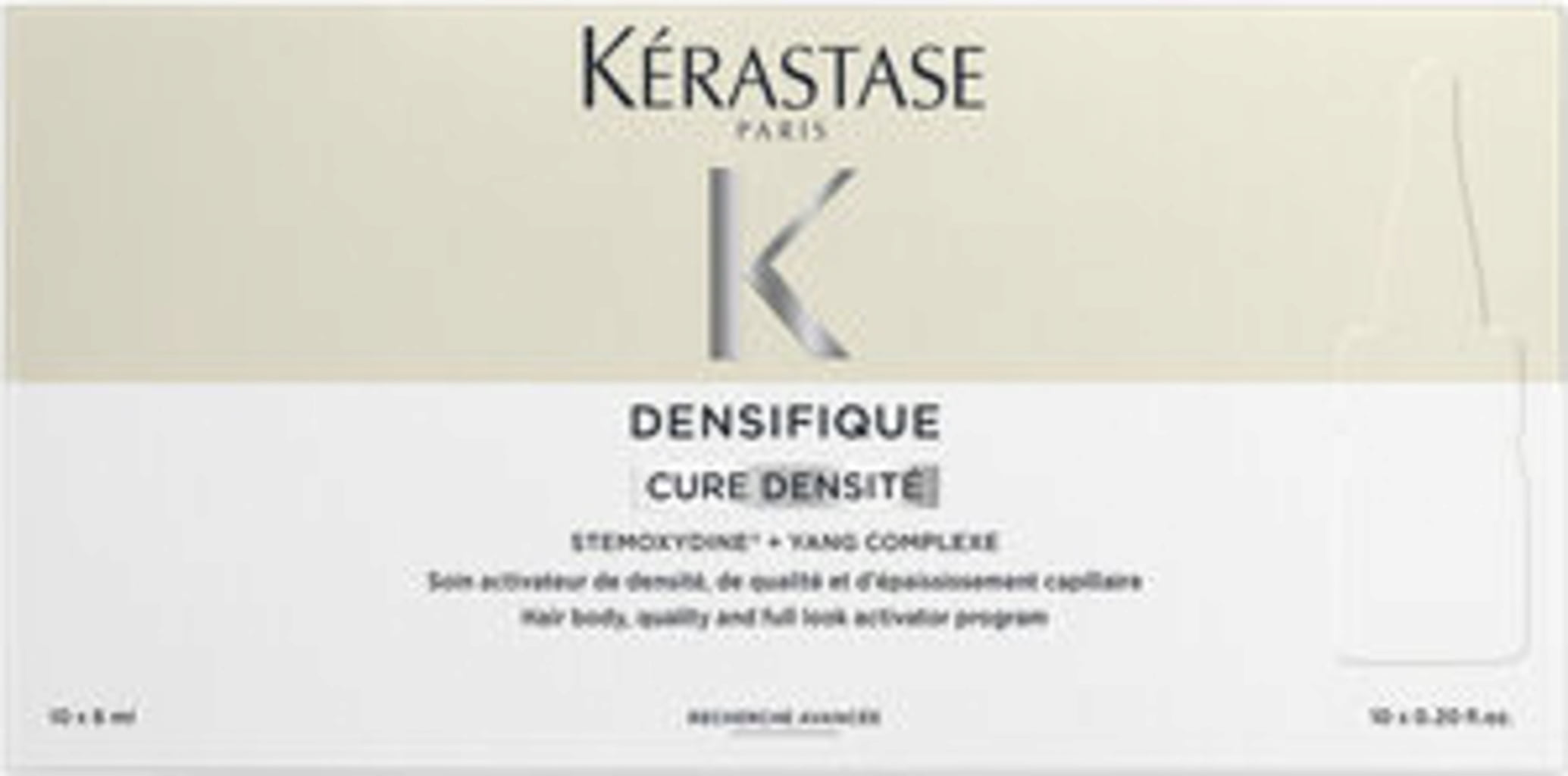 Densifique Kur Femme von Kérastase kann dabei helfen, die Haardichte zu erhalten und sorgt für mehr Widerstand und Griffigkeit. Angereichert mit B3, B5 und B6 Vitaminen wird zusätzlich die Aktivität der Haarfollikel unterstützt, um für ein fülligeres Finish zu sorgen.