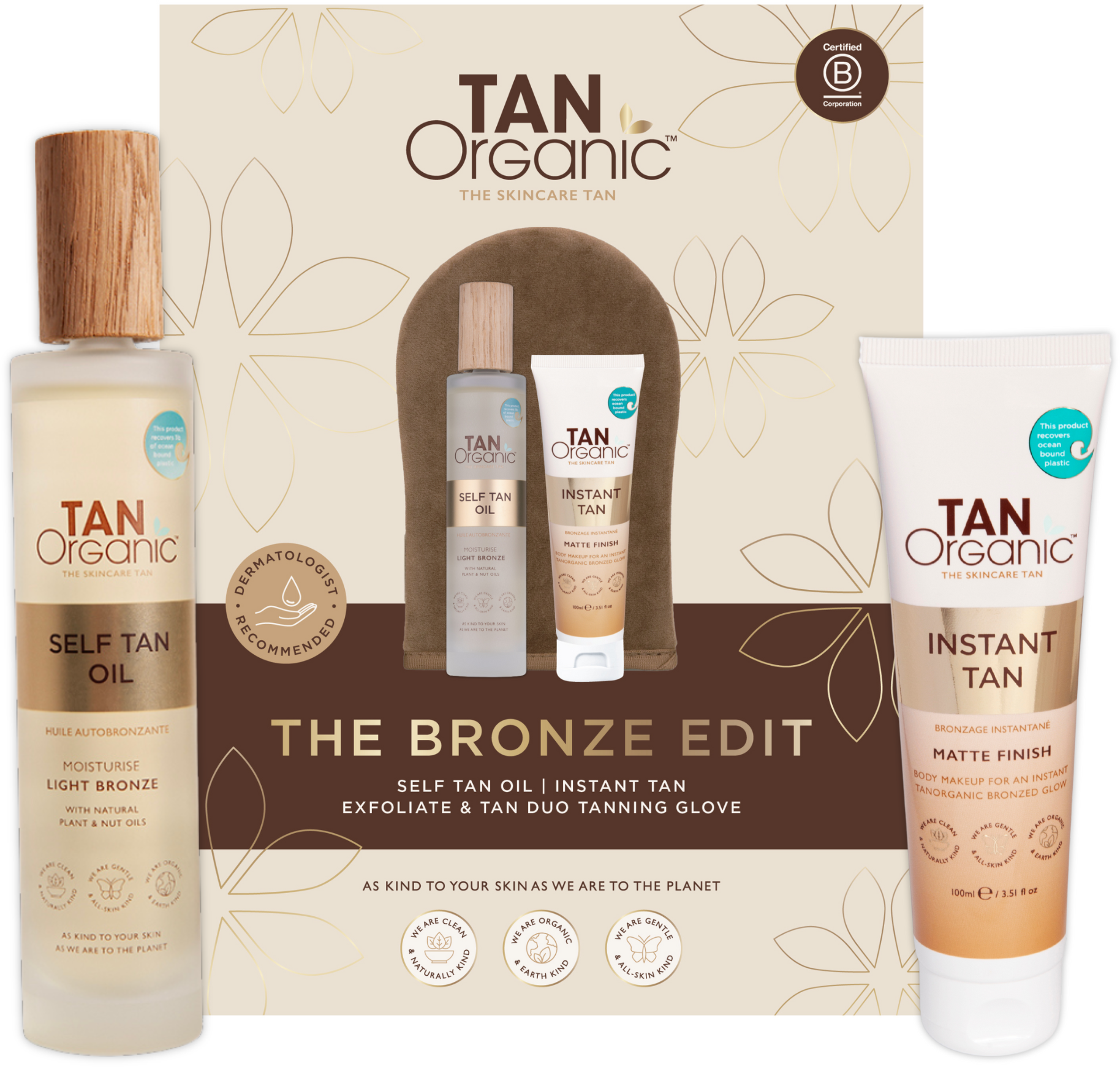 Dieses Geschenkset enthält eine komplette Glow-Beatuy-Routine - von der Vorbereitung bis hin zur perfekten Bräune. Das luxuriöse Trio aus dem Self Tan Oil Light Bronze für einen strahlende, hydratisierte Bräune, dem Instant Tan Matte Finish für einen sofortigen Glow und dem Duo Tanning & Exfoliating Mitt für Vorbereitung sowie Anwendung, um ein ebenmäßiges, makelloses Finish zu erzielen. Alles, was für glatte, strahlende, natürlich gebräunte Haut benötigt wird – wunderbar einfach, mühelos und sanft.