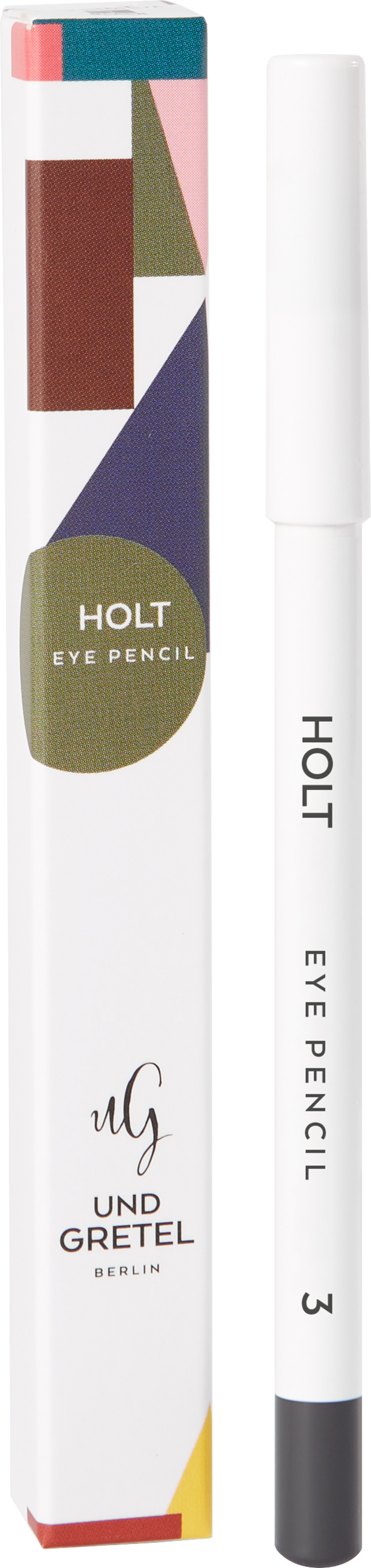 Beim HOLT Eye Pencil von UND GRETEL kommen lediglich zertifizierte Inhaltsstoffe an die sensible Stellen bei den Augen. Der Stift ist aus dem besten Holz geschnitzt und bietet dank seiner hochpigmentierten Nuance ein sattes Farbergebnis. Mit seiner Multi-use Eigenschaft als Kajal und Eye Liner eignet sich der Stift zur präzisen Linienführung auf den Lidern oder Lippen, aber auch für Special Effects oder dramatische Smokey Eyes. Die metallischen Nuancen überzeugen mit ihrer hervorragenden Deckkraft sowie Haltbarkeit und lassen sich auch ausgezeichnet verblenden. Dabei schenkt der Eye Pencil der Haut dank wertvollen Wachsen, Ölen und pflanzlichen Extrakten noch die ideale feuchtigkeitsspendende Pflege.