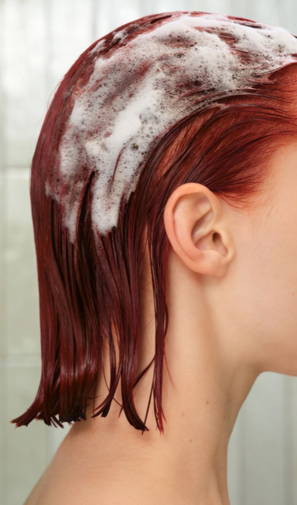 - Auf das feuchte Haar und die Kopfhaut auftragen.