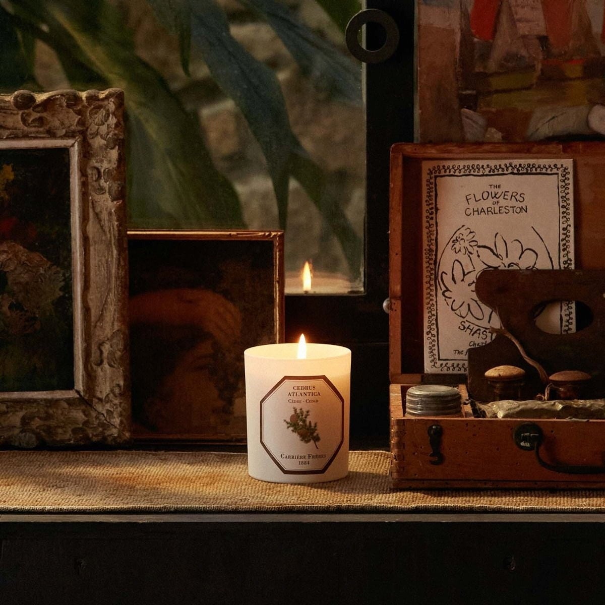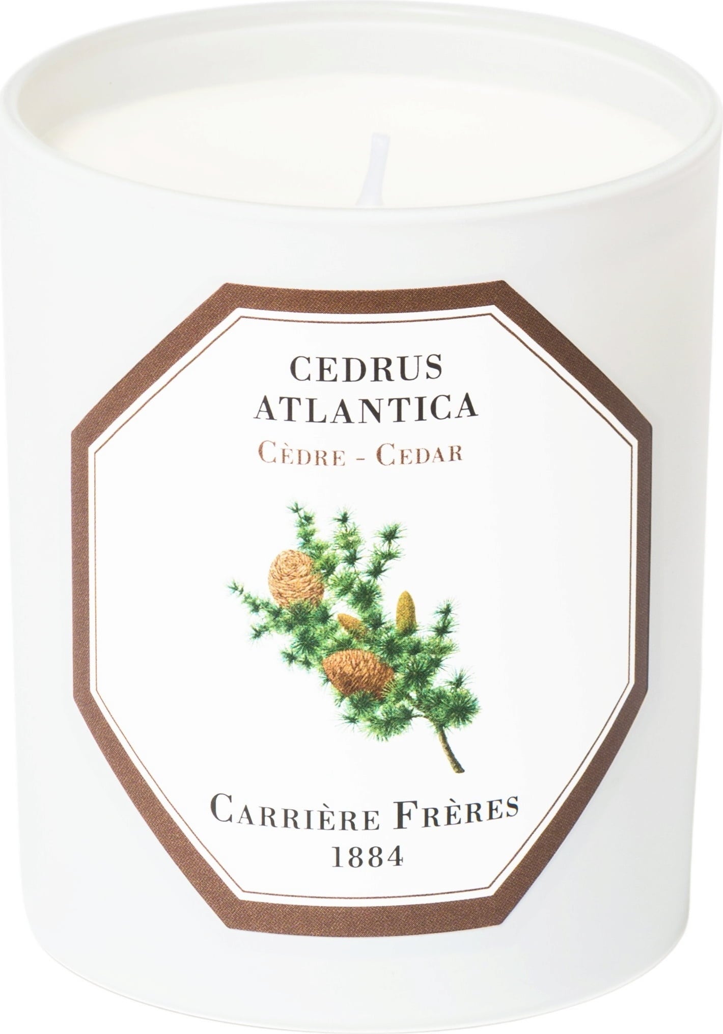 La Bougie Cèdre de Carrière Frères offre des notes boisées, sèches, enveloppantes et réconfortantes. Sa note de fond résineuse dévoile en outre une certaine fraîcheur. Le cèdre est un bois particulièrement prisé en parfumerie, il réchauffe et est assainissant. Le parfum dégage de la douceur et du calme, surtout lorsque tout ne va pas bien.