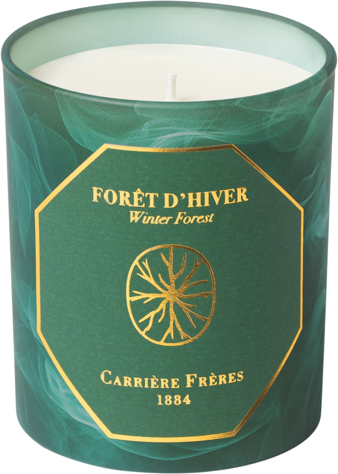 La Bougie Forêt d'Hiver de Carrière Frères rend hommage à la saison hivernale et à son paysage de forêts luxuriant, capturant l'arrivée paisible de l'hiver qui s’installe et recouvre les sous-bois. Au rythme calme de l’hiver, la fragrance est une promenade olfactive et débute par un accord boisé aromatique, des notes fraîches de sapin, genièvre et eucalyptus. Des notes de cèdre et de mousse viennent ensuite approfondir l'accord.