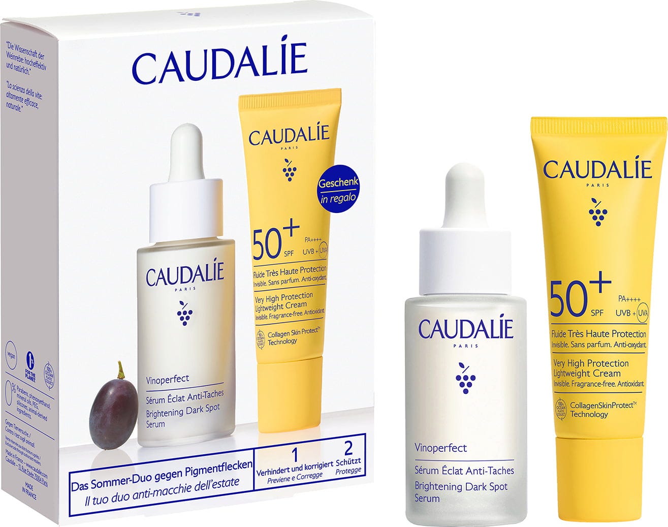 Le Vinoperfect Duo d’Été 2026 de Caudalie offre un glow estival en double : le duo idéal pour un bronzage uniforme et durable, sans compromis. Le sérum Vinoperfect atténue visiblement les taches pigmentaires et illumine le teint. En bonus, le fluide SPF 50+ est offert : une protection ultra-légère pour le visage et le cou, au toucher soyeux. Ces deux essentiels séduisent par leur parfum estival et sont absorbés rapidement.