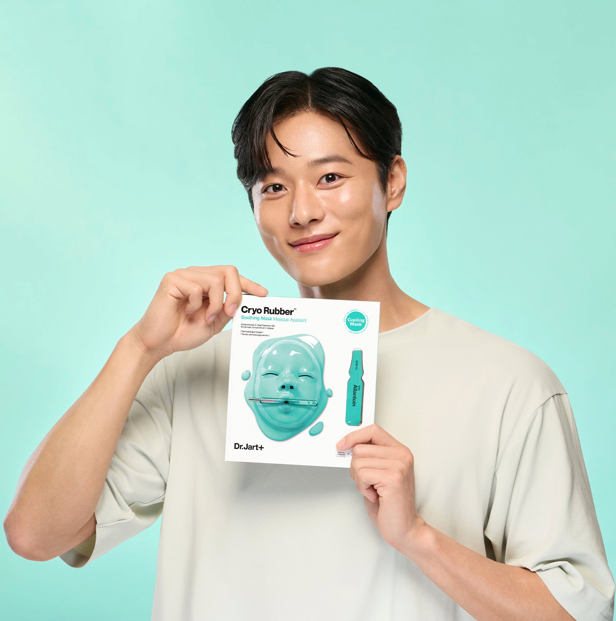 Le Cryo Rubber™ Soothing Mask de Dr. Jart+ est un masque pour le visage qui équilibre particulièrement les peaux sensibles, irritées ou stressées. En plus du masque, vous recevez une ampoule remplie d'un sérum gélifié. Celui-ci est formulé avec un complexe d'allantoïne, qui est ensuite efficacement fixé par le masque. La combinaison du masque hydratant et du sérum régénérant vous offre une expérience de soin intense et vous récompense avec une peau bien hydratée, équilibrée et apaisée.