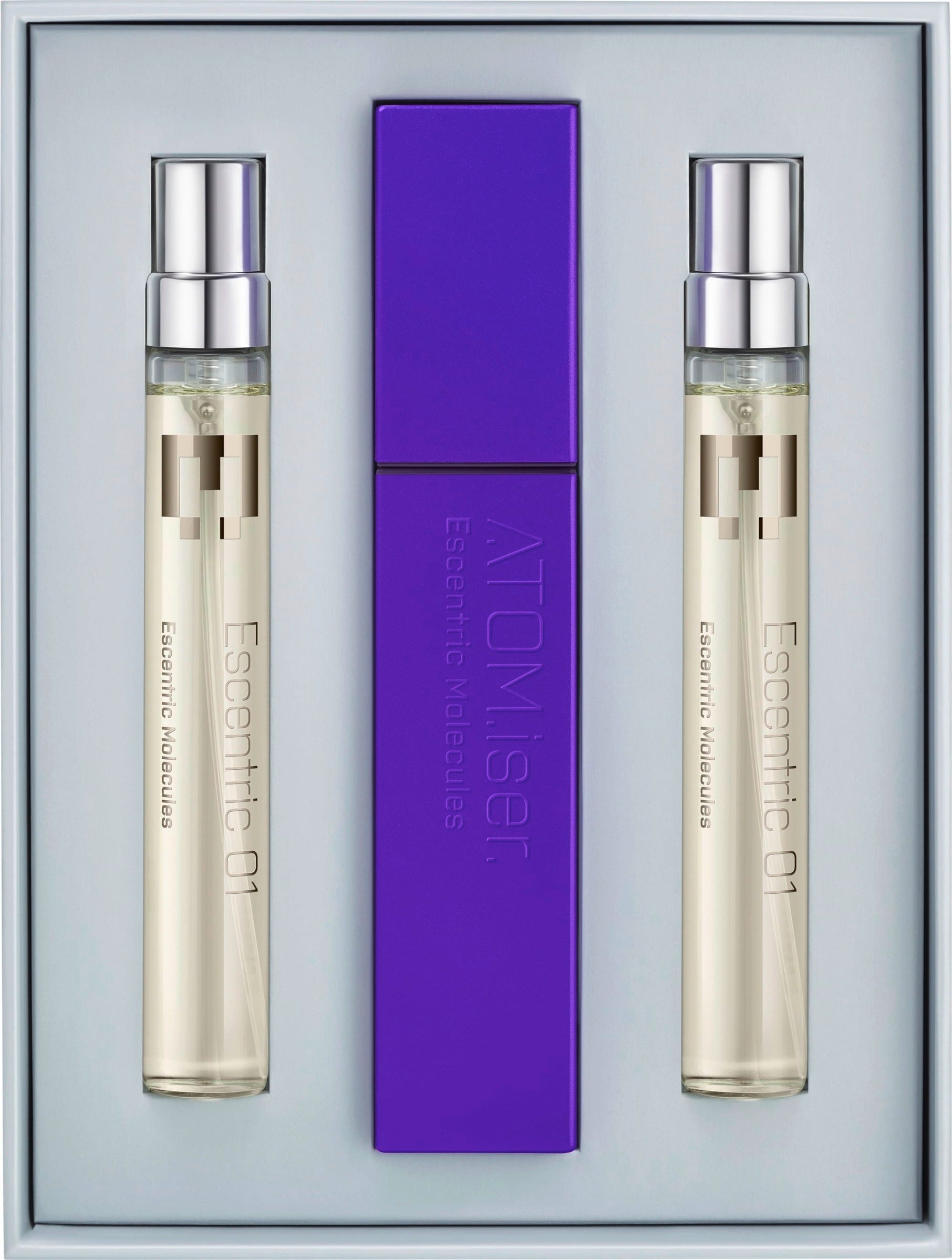 Le Escentric 01 ATOM.iser Set de Escentric Molecules est un coffret luxueux composé de trois recharges de l'Escentric 01 Eau de Toilette, ainsi que d’un boîtier à parfum pratique, conçu pour offrir durabilité et confort de voyage haut de gamme, afin de vous accompagner avec classe partout en déplacement.