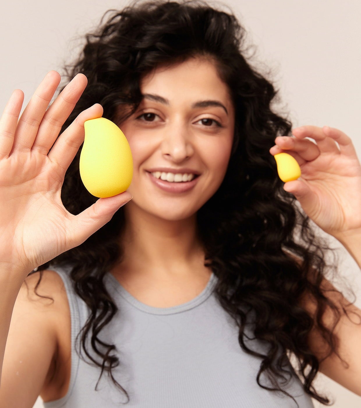 - Mango Sponge (Grande) : Pour appliquer le maquillage du teint (fond de teint, poudre) sur le visage et le décolleté.