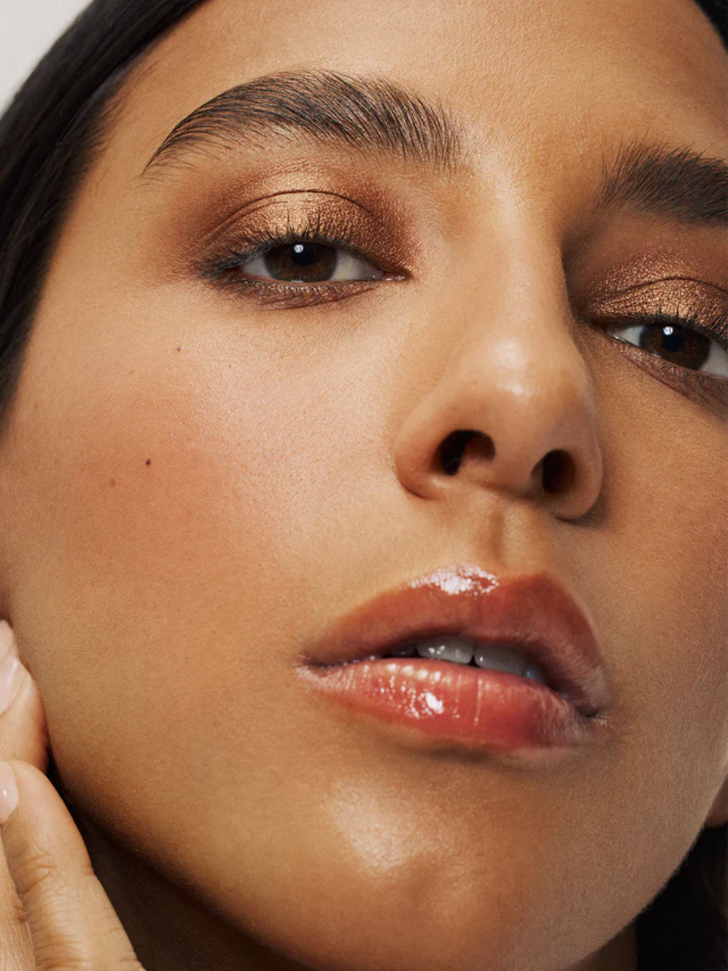 - Les teintes se combinent aussi parfaitement en dessous de l’œil. Pour cela, estomper du bout des doigts ou à l’aide d’un pinceau pour les yeux.