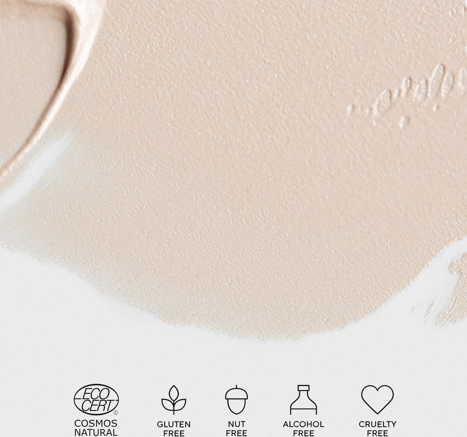 Zinc Oxide, Dicaprylyl Carbonate, Oryza Sativa (Rice) Bran Oil, Vegetable Oil, Isoamyl Laurate, Helianthus Annus Seed Cera, Oryza Sativa (Rice) Bran Cera, Rhus Succedanea Fruit Cera, Simmondsia Chinensis (Jojoba) Seed Oil, Silicia, Theobroma Cocoa Seed Butter, Aroma, Tocopherol (Vitamin E), Hippophae Rhamnoides (Sea Buckthorn) Fruit Oil, Nigella Sativa Seed Oil, Glycolipids, Aluminium Hydroxide, Glycosphingolipids, Aqua, Vanillin, Terpineol, Linalyl Acetate, Anethole, Geraniol, CI 77891 (Titanium Dioxid), Iron Oxide (CI 77491, CI 77492, CI 77499)