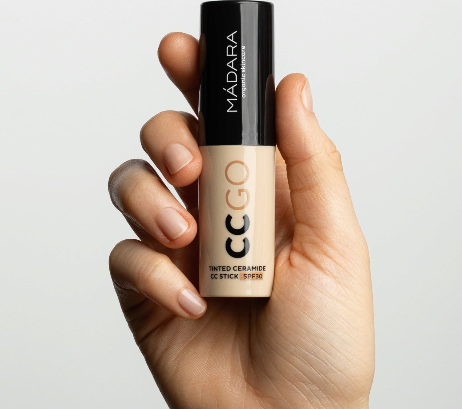 Le CCGO Tinted Ceramide CC Stick SPF30 de MÁDARA a été conçu pour toutes celles et ceux qui n’ont pas de temps à perdre, sans pour autant renoncer à un teint parfait. Sa texture crémeuse unifie instantanément les irrégularités et les taches pigmentaires, tout en offrant un fini naturel qui ressemble à votre peau, en plus éclatant. Grâce aux céramides et aux précieuses huiles de graines, la peau est non seulement sublimée, mais aussi nourrie en profondeur et protégée. Parallèlement, le filtre minéral à large spectre UVA/UVB aide à prévenir les signes du vieillissement cutané prématuré. Le résultat : un teint uniforme, aussi agréable au toucher qu’à regarder. Son format stick compact et rotatif est idéal pour rafraîchir votre protection solaire et votre teint à tout moment et en tout lieu.