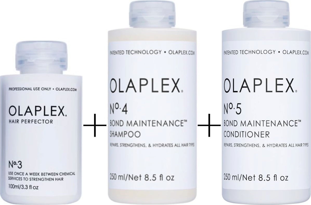 L' ensemble de soins No. 3, 4 & 5 d'Olaplex offre tout ce dont les cheveux ont besoin pour être nourris et renforcés.