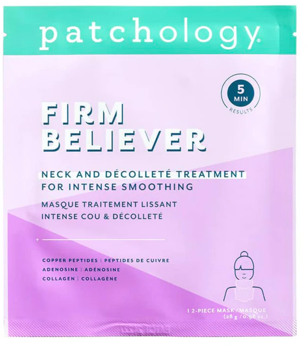 Le Firm Believer Neck & Décolleté Treatment (Masque Traitement Lissant Intense Cou & Décolleté) de Patchology est la réponse idéale aux ridules et au teint terne sur une zone souvent négligée. Ce masque hydrogel spécialisé épouse parfaitement vos contours et offre un effet liftant visible en un temps record de seulement 5 minutes. Grâce à sa texture innovante, les actifs sont diffusés avec une efficacité optimale pour revitaliser et nourrir intensément la peau. Les peptides de cuivre agissent activement pour lisser les rides, tandis que l’adénosine renforce la barrière cutanée et favorise un teint uniforme et lumineux. Cette formule puissante est complétée par un précieux collagène qui améliore l’élasticité et aide à retenir l’hydratation dans les couches profondes de la peau. Offrez-vous ce moment de soin luxueux et profitez d’un décolleté aussi ferme et lisse au toucher qu’à l’œil nu.