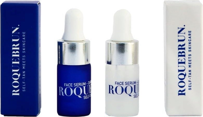 Le Sample Set de ROQUEBRUN réunit deux sérums autobronzants qui apportent un hâle naturel tout en hydratant intensément la peau. Ils peuvent s’appliquer directement sur une peau propre ou être mélangés à vos soins habituels. Enrichis en rétinol végétal, acide hyaluronique, collagène et aloe vera, ils lissent, raffermissent et apaisent la peau. Conviennent à tous les types de peau, utilisables matin et soir, ils offrent un bronzage naturel sans reflet orangé. Leur texture légère et non grasse est vite absorbée, est sans parfum et donne des résultats en 4 à 8 heures, qui tiennent 3 à 4 jours.