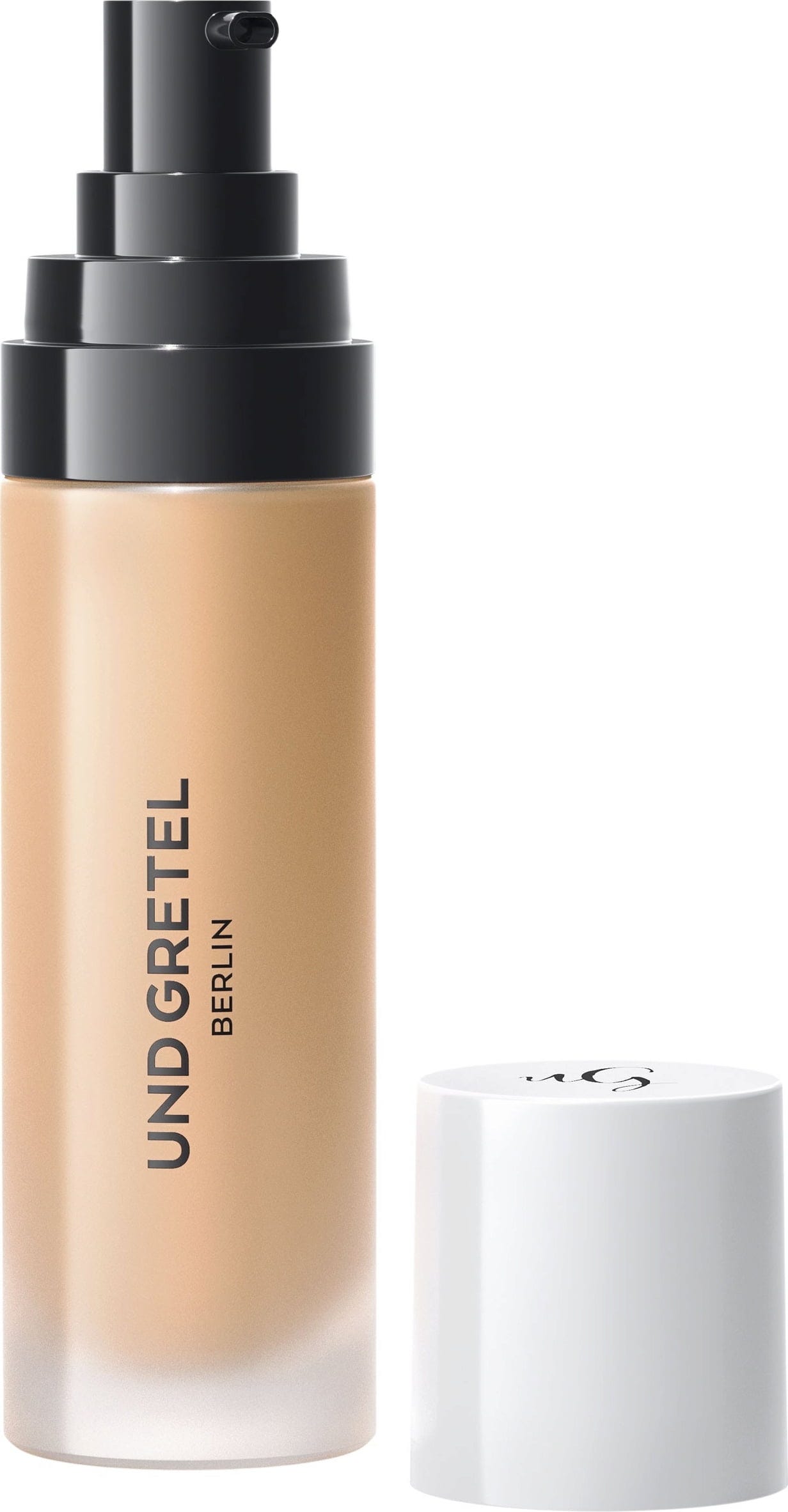 La EBEN Liquid Foundation de Und Gretel révèle en quelques secondes la plus belle version de votre visage, se fond parfaitement à votre carnation et vous offre un fini "soft glow" irrésistible, d’un naturel absolu. Sa texture légère comme l’air procure une sensation de confort incomparable et sublime votre apparence sans effet masque. Grâce à l’innovant [UN]REAL SKIN COMPLEX, votre peau paraît presque irréellement uniforme. L’eau de tige d’orge précieuse et le squalane végétal apportent une hydratation intense, tandis que le haricot mat agit comme une alternative douce au rétinol pour stimuler délicatement le renouvellement cellulaire. L’effet antioxydant de l’écorce de magnolia et des vitamines renforce votre barrière cutanée et la protège des agressions extérieures. L’extrait de magnolia contenu dans la formule procure également un effet apaisant agréable sur les zones sensibles. Vous pouvez appliquer le fond de teint aussi simplement qu’une crème de jour et moduler le résultat selon vos envies, pour un teint frais qui met en valeur votre beauté naturelle.