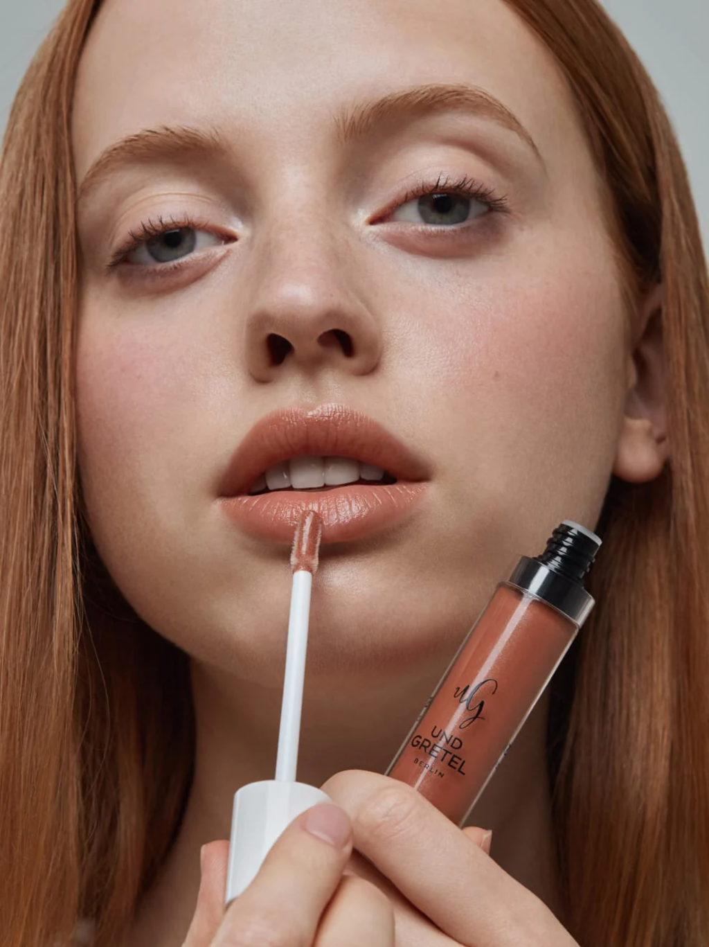 Le KNUTZEN Lip Gloss de UND GRETEL ne se contente pas de donner à vos lèvres une couleur merveilleusement scintillante, il dépose également un léger film protecteur sur la peau, comme un baume. La formule régénérante libère également suffisamment d'humidité.