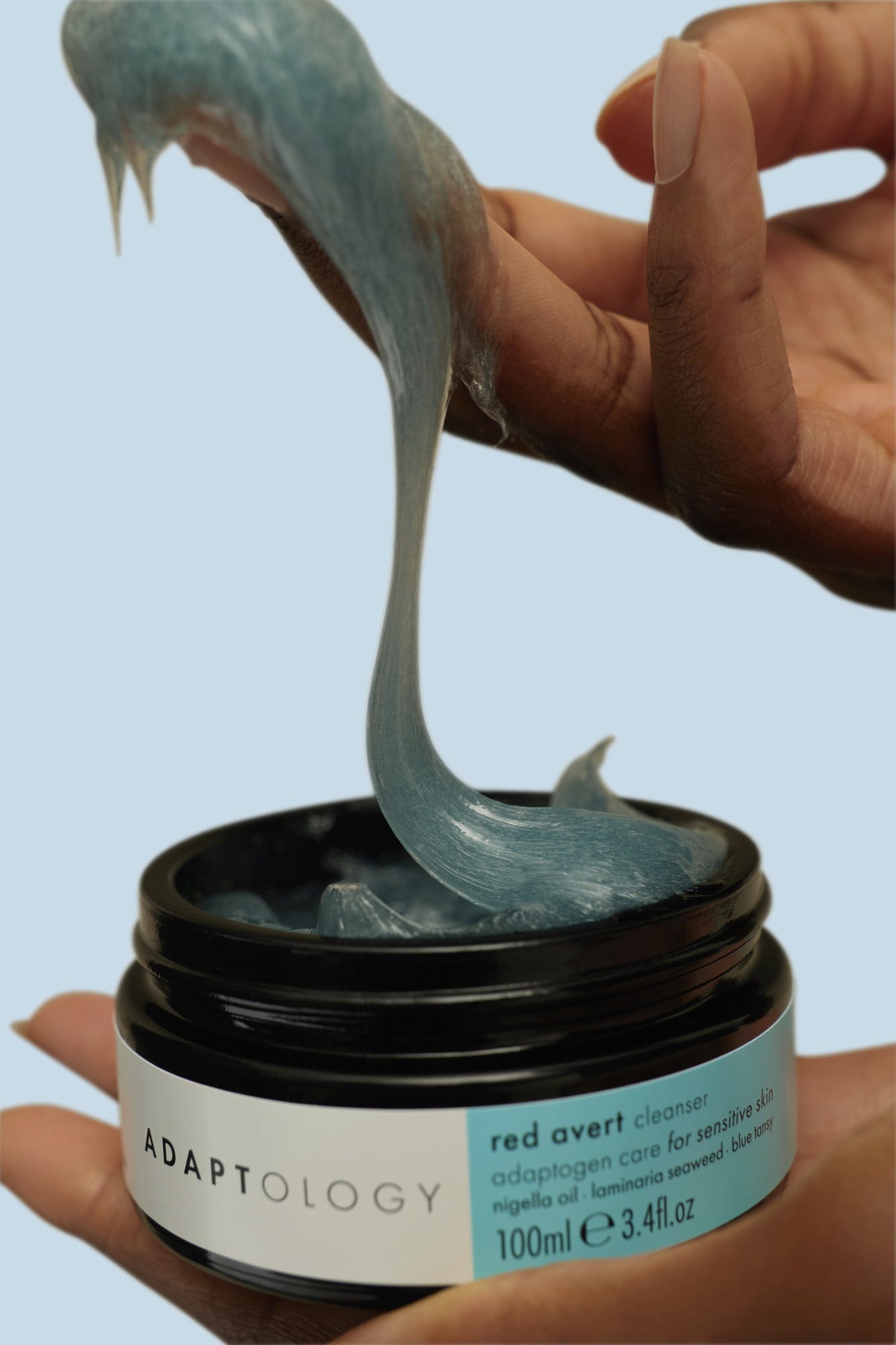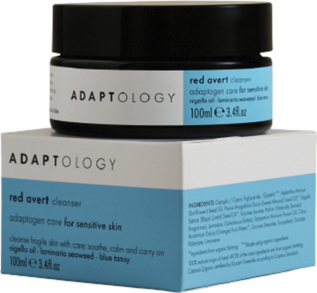 De RED AVERT CLEANSER van Adaptology verwijdert moeiteloos make-up en vuil van de dag. Tegelijkertijd ondersteunt de reinigingsbalsem de natuurlijke functie van je huid en versterkt het de beschermende barrière. Verrijkt met plantaardige ingrediënten zoals blauwe boerenwormkruid, bruinwierenextract en nigella-olie, heeft het product een kalmerend en voedend effect.