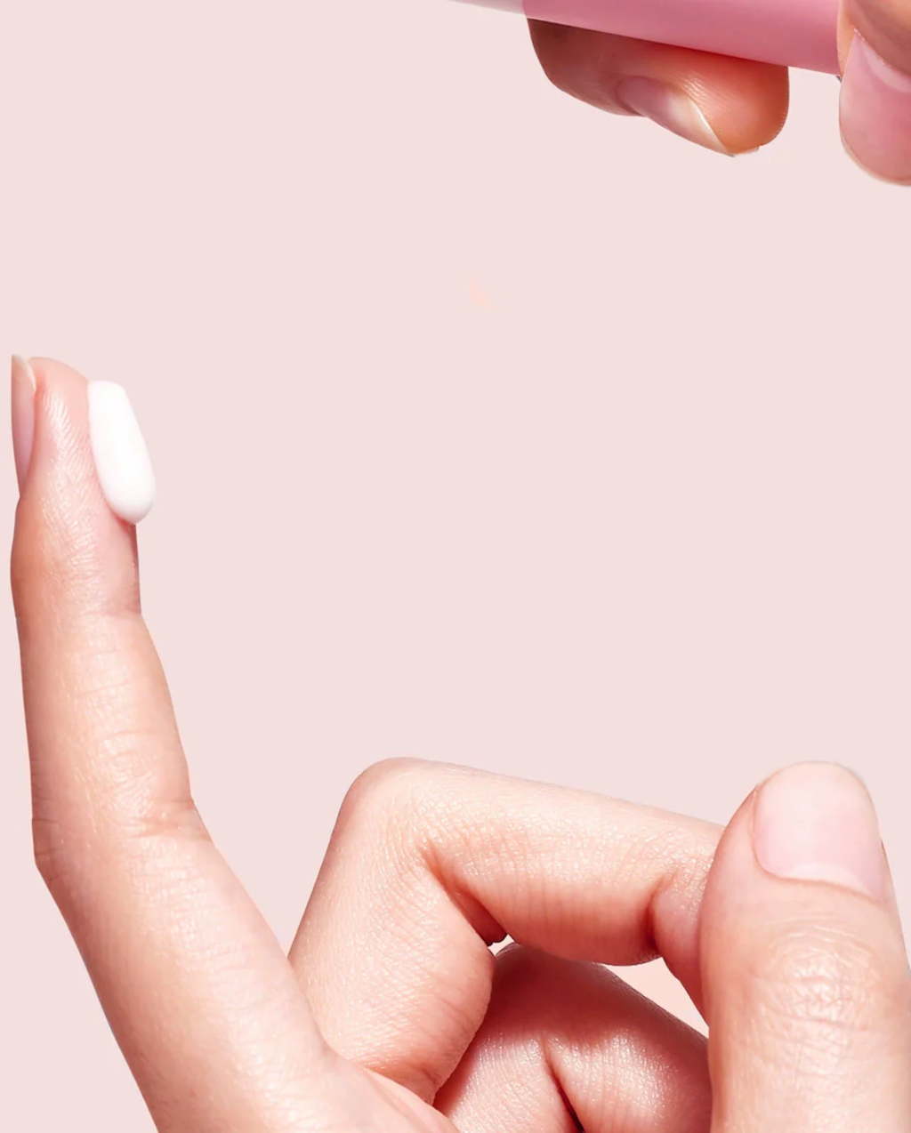- Neem 1 tot 2 pompjes op je vingertoppen en verdeel over zowel gezicht als hals.