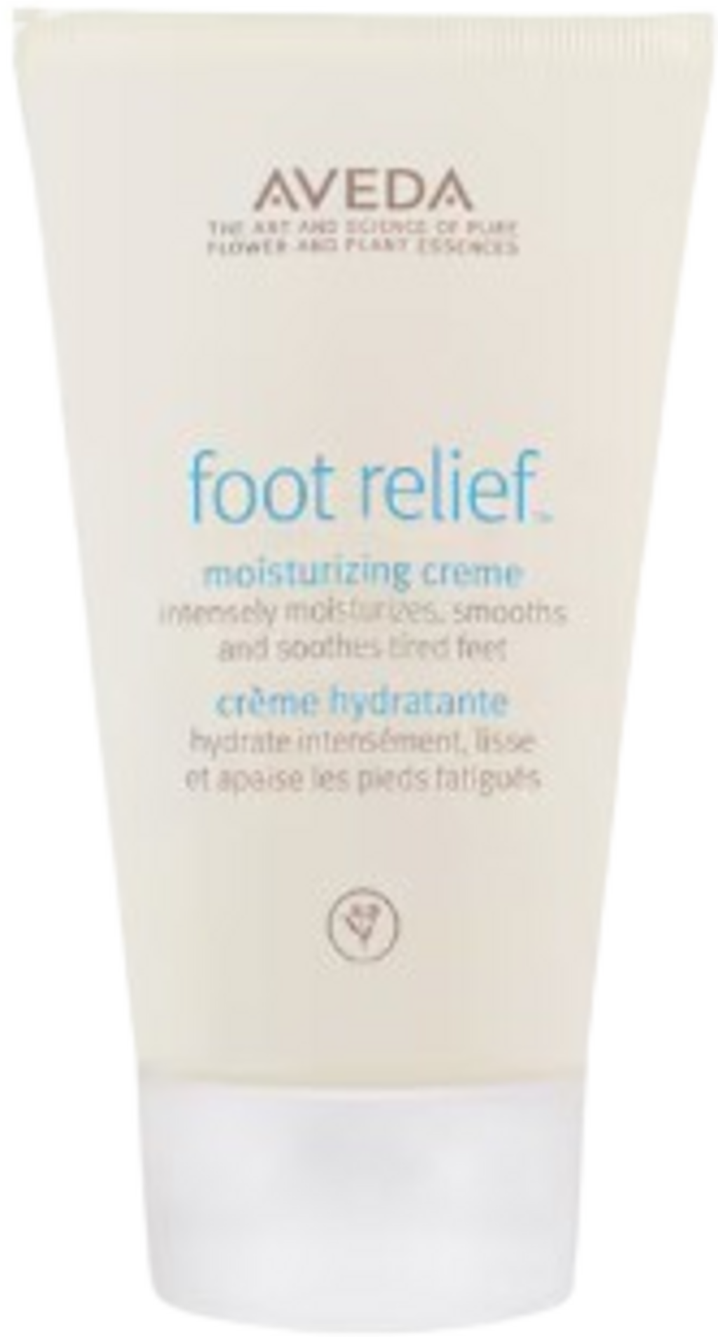 Foot Relief™ van Aveda is een vochtinbrengende, snel intrekkende crème die is samengesteld om vermoeide voeten te kalmeren met behulp van een mix van actieve kruiden, exfoliërende fruitzuren en plantaardige oliën, waaronder jojoba en ricinusboon. De crème verzacht de zwaar gestreste huid en het gespannen gevoel en zorgt voor hydratatie. Het heeft een verkwikkend effect op vermoeide voeten en benen en maakt droge zones glad. Lavendelolie en rozemarijnolie hebben een geurverdrijvend effect op de voeten.