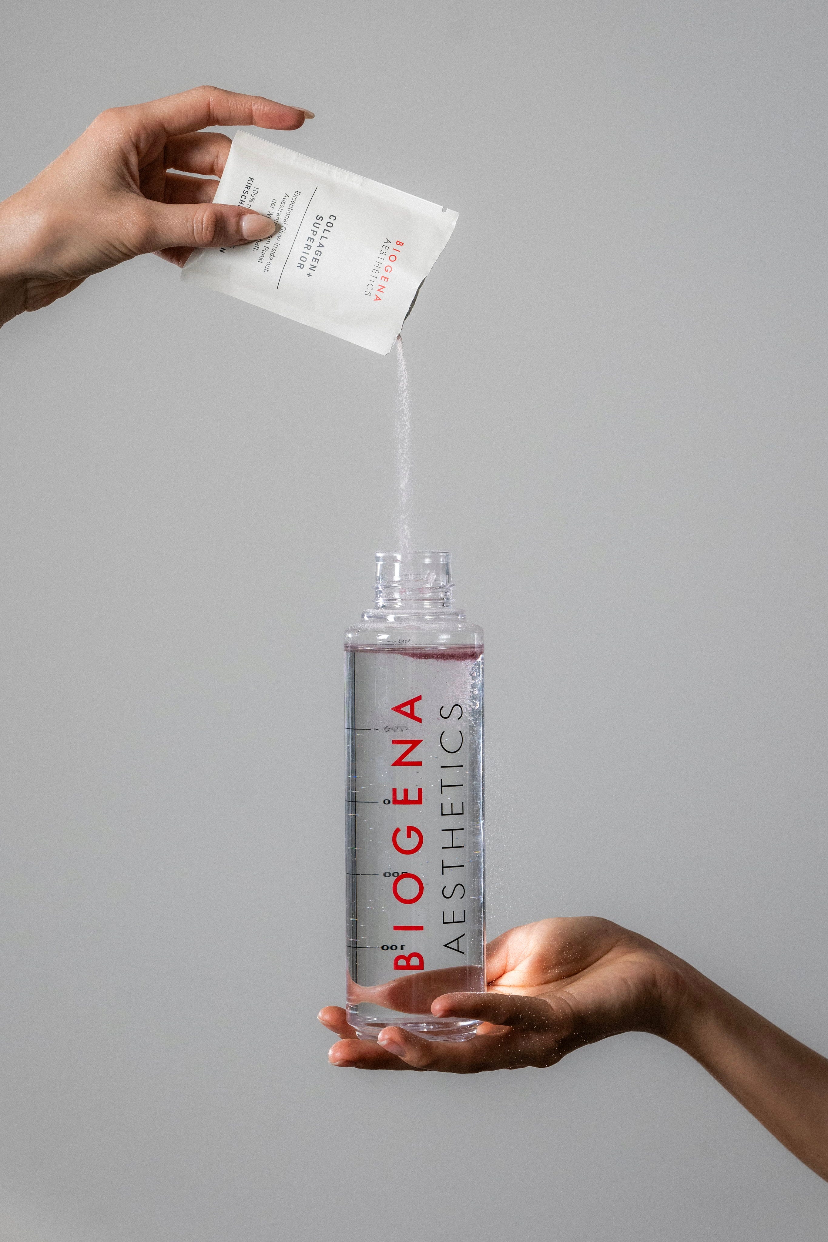 Het Collagen+ Essentials Set van BIOGENA AESTHETICS biedt een verfrissende kersentijm smaak en combineert zorgvuldig geselecteerde ingrediënten tot een premium-mix. Het bevatte collageen NATICOL®, dat voornamelijk is gebaseerd op type I viscollageen-peptiden en zich kenmerkt door een bijzonder hoge biologische beschikbaarheid. Het is afkomstig uit verantwoorde aquacultuur die de duurzame bescherming van mariene hulpbronnen ondersteunt. Het product wordt aangevuld met biotine, zink, granaatappelextract en hibiscus bloemextract – een harmonieuze combinatie voor een stralend en fris huidgevoel.