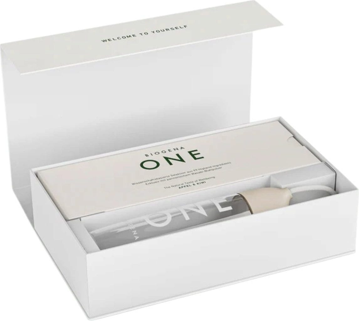 Met een unieke mix van 13 vitaminen, 11 mineralen en sporenelementen, 49 geselecteerde plantaardige stoffen en 10 lacto- en bifidobacterieculturen ondersteunt BIOGENA ONE jouw lichaam op natuurlijke wijze. De verfrissende smaak van appel, kiwi, komkommer en een snufje wasabibladpoeder maakt van je dagelijkse inname van voedingsstoffen een bijzonder moment om te genieten.