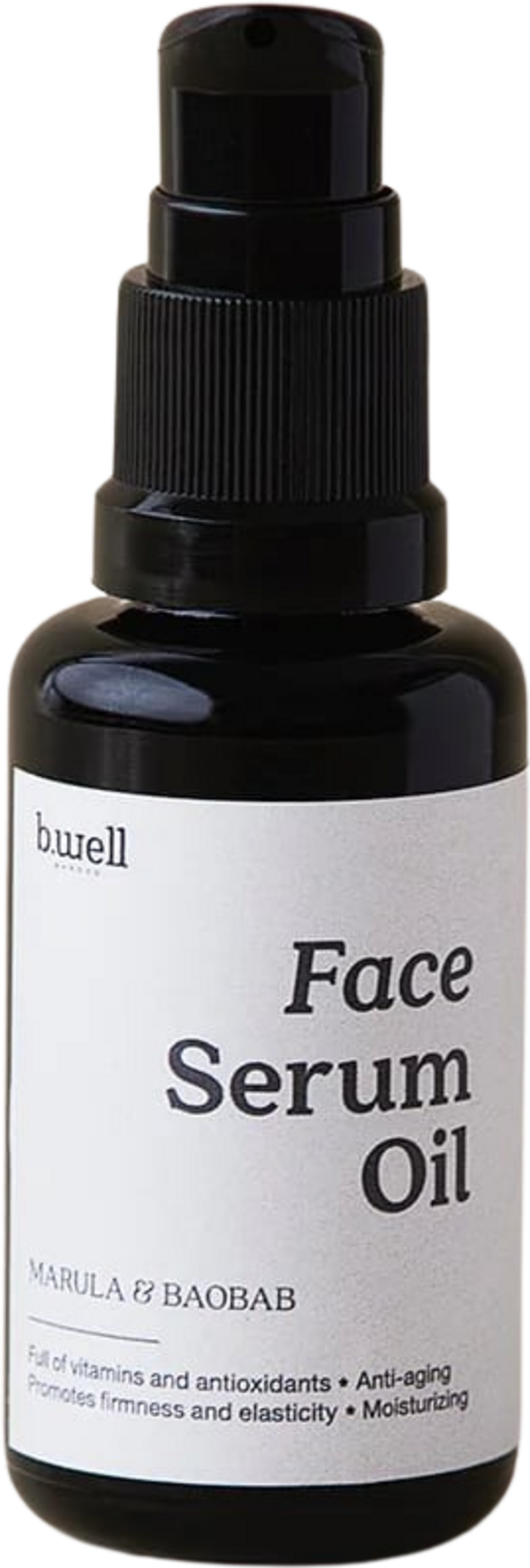 Marula- en baobabolie worden al lange tijd beschouwd als schoonheidsoliën in de Afrikaanse cultuur. Daarom combineert B.Well Garden deze twee exotische ingrediënten in hun Face Serum Oil. Deze goddelijke mix is boordevol vitaminen, antioxidanten, essentiële vetzuren en waardevolle aminozuren voor het ultieme anti-aging effect. Fijne lijntjes, kleine rimpeltjes en irritaties worden verminderd en de huid geniet van regeneratie, rehydratie en versterking. De gezichtsolie blinkt ook uit door zijn duurzame karakter, want het stimuleert langdurig de lichaamseigen collageenproductie en herstelt door omgevingsfactoren veroorzaakte huidbeschadigingen. Geschikt voor alle huidtypes, maar met bijzondere aandacht voor de rijpere of droge huidtypes, is de Face Serum Oil de optimale keuze voor dagelijkse aanvullende verzorging.