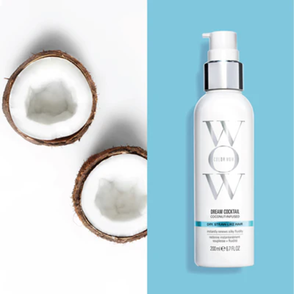 De Dream Cocktail Coconut van Color WOW biedt een complex van 18-MEA en kokosolie, dat de door kleur- en hittebehandelingen verloren lipidelaag nabootst en vervangt. Deze is essentieel om vocht vast te houden en de schubbenlaag glad en stevig te houden. Deze verzorging gaat al deze problemen tegen en herstelt de glans, beweeglijkheid en veerkracht van het haar.