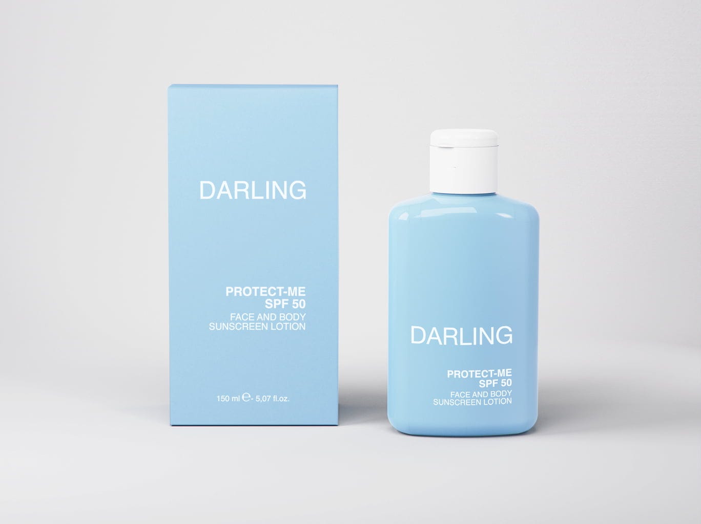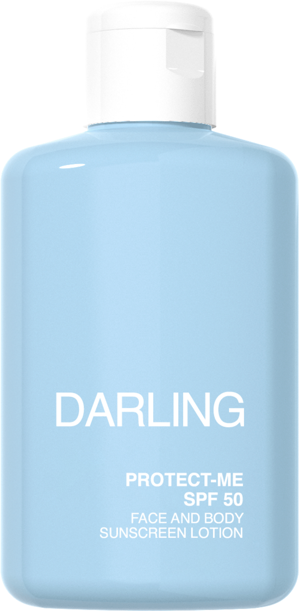Protect-Me SPF 50 van DARLING dient als dagelijkse zonnebrand en vochtinbrengende crème voor gezicht en lichaam. Het beschermt de huid tegen schadelijke UVA- en UVB-stralen evenals tegen luchtvervuiling en verbetert je huidteint dag na dag. De krachtige formule is gebaseerd op de nieuwste generatie geavanceerde UV-filters die veilige en effectieve bescherming combineren met een ecologisch profiel (Rifveilig). Verrijkt met voedende jojoba-olie en abrikozenpitolie zorgt deze lotion ook voor een gladdere en soepelere huid. Allantoïne en vitamine E hydrateren en egaliseren de teint. De zachte formule bevat bovendien heermoesextract, een bijzonder kalmerend en voedingsrijk ingrediënt dat de belangrijkste omgevingsstressfactoren tegengaat en de huid beschermt tegen het ontstaan van tekenen van huidveroudering. De ultralichte, waterbestendige textuur trekt snel in en verwent de zintuigen met een tropische geur van delicate tonen van kokosnoot, tiare en monoi.
