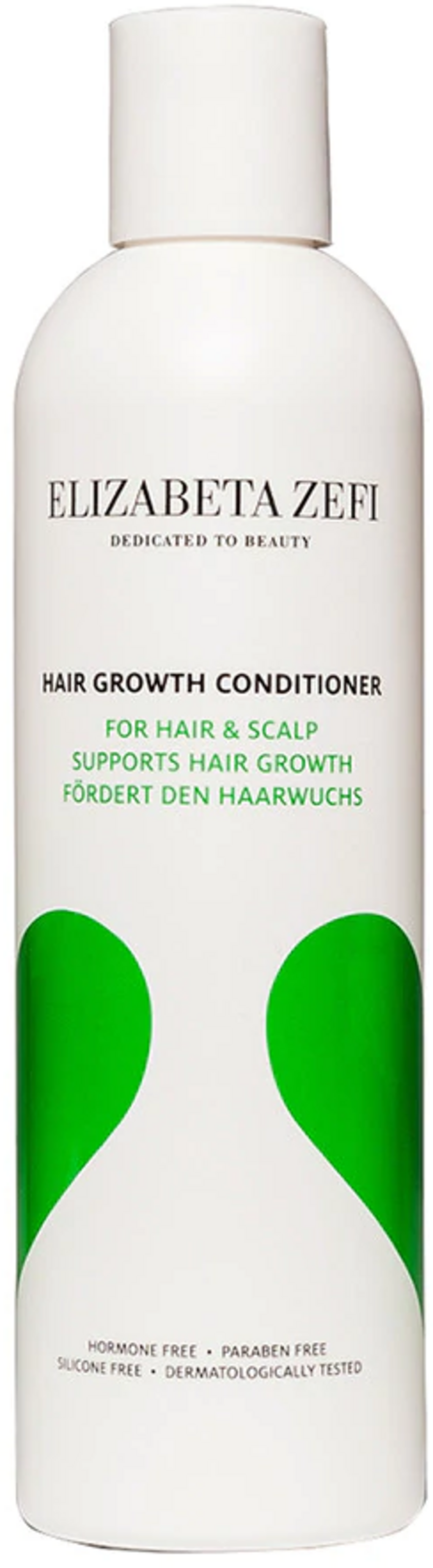 De Hair Growth Conditioner van Elizabeta Zefi verzorgt het haar niet alleen zijdezacht en voorziet het dankzij aloë vera, panthenol en glycerine van veel vocht, maar stimuleert ook de haargroei. Dit wordt mogelijk gemaakt door het wetenschappelijk geteste actieve bestanddeel Follicusan, dat haaruitval tegengaat. Regelmatig gebruik is noodzakelijk. Eerste resultaten kunnen na ongeveer drie tot zes maanden worden waargenomen.
