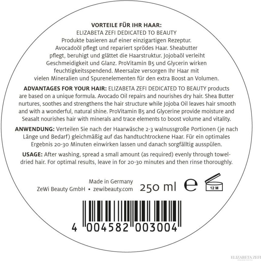 Het probleem met sommige rijke haarmaskers is dat ze het haar snel zwaar maken en vooral fijn haar plat kunnen laten lijken. Maar niet met het Verdikkende Masker van Elizabeta Zefi! Dit haarmasker is speciaal ontwikkeld voor dun, fijn haar.