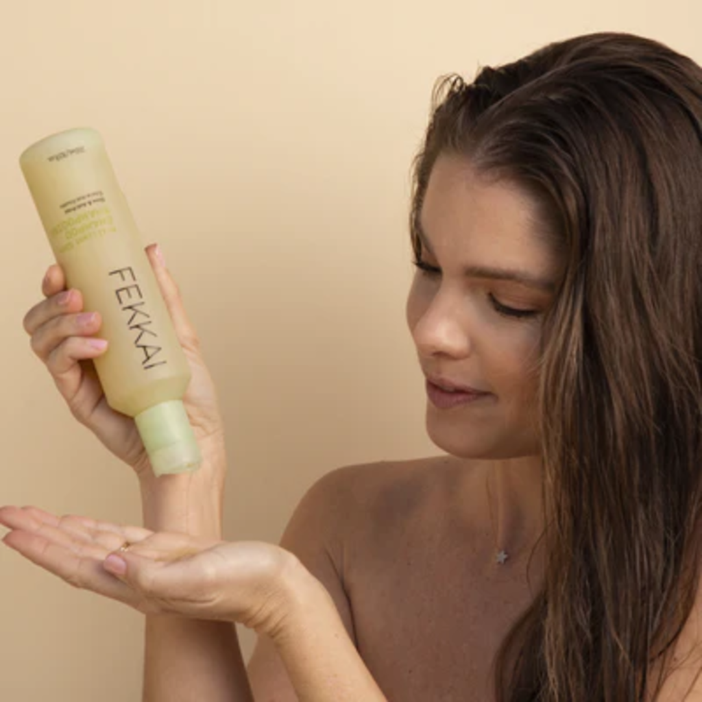 De Brilliant Gloss Shampoo van FEKKAI is een zeer voedzame shampoo met een glansversterkend effect, die vooral droog haar revitaliseert en verzorgt, en de vorming van gespleten haarpunten duurzaam voorkomt. Antioxidantenrijk biologische olijfolie, versterkende cactusvijg-extract en oliën van jojoba en kokosnoot geven je haar een extra portie vocht en zorgen voor een prachtige, soepele glans. Zonder te verdikken, reinigt de romige formule bijzonder mild en schenkt waardevolle vitaminen. Het laat een houtig-bloemige geur achter met een topnoot van groene thee. Geniet niet alleen van deze heerlijke geur, maar ook van herwonnen kracht en glans van je haar!