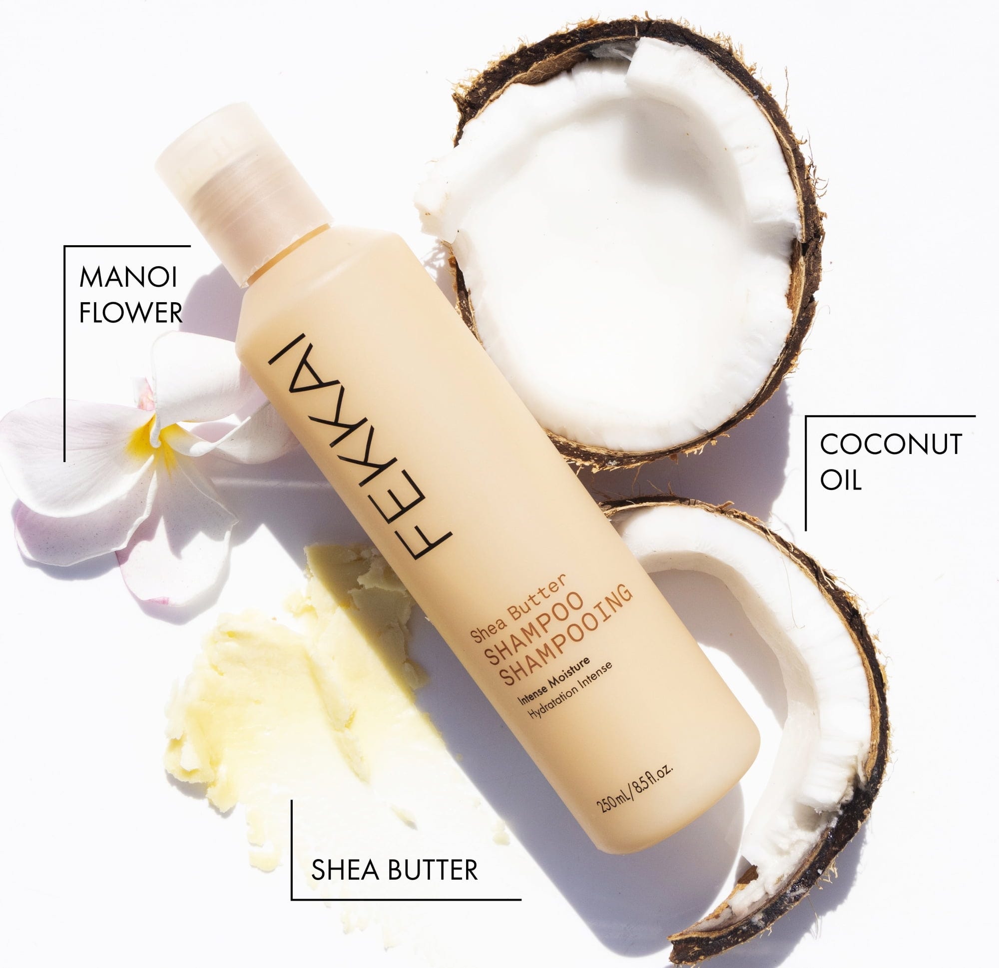 Cosmeterie-tip: Combineer de shampoo met de Shea Butter Conditioner en het Shea Butter Miracle Mask van FEKKAI.
