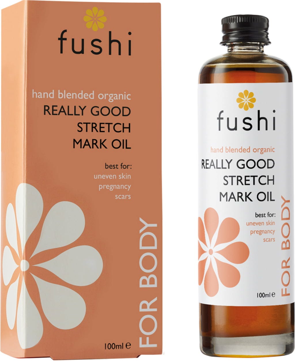 De Really Good Stretch Mark Oil is een unieke, parfumvrije mix die het uiterlijk van littekens en striae verbetert. Het bevat Indiase tulsi, beter bekend als heilige basilicum, in combinatie met baobab, omega-3, vitamine E en D, evenals oliën afkomstig van tarwekiemen, grapefruit en avocado om ongelijke delen van de huid te voeden. Fushi gebruikt puur natuurlijke ingrediënten afkomstig uit de biologische landbouw.