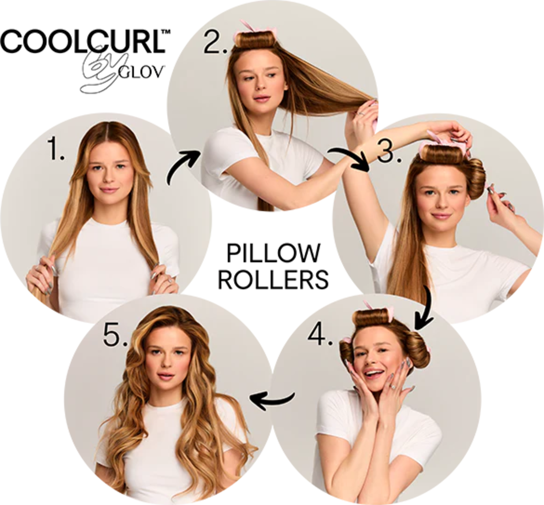 De COOLCURL™ Pillow Rollers zijn de perfecte oplossing om prachtige krullen en golven te krijgen zonder veel moeite of warmte. De innovatieve krullers zijn gemaakt van extra absorberende GLOV-vezel, memory foam en twee mooie strikken. De Ribbon Rollers zijn licht en ruimtebesparend, zodat ze in elke bagage passen. Ze zijn ook geschikt voor langer en dikker haar, hoewel het wordt aanbevolen om twee sets te gebruiken voor heel dik of heel lang haar.