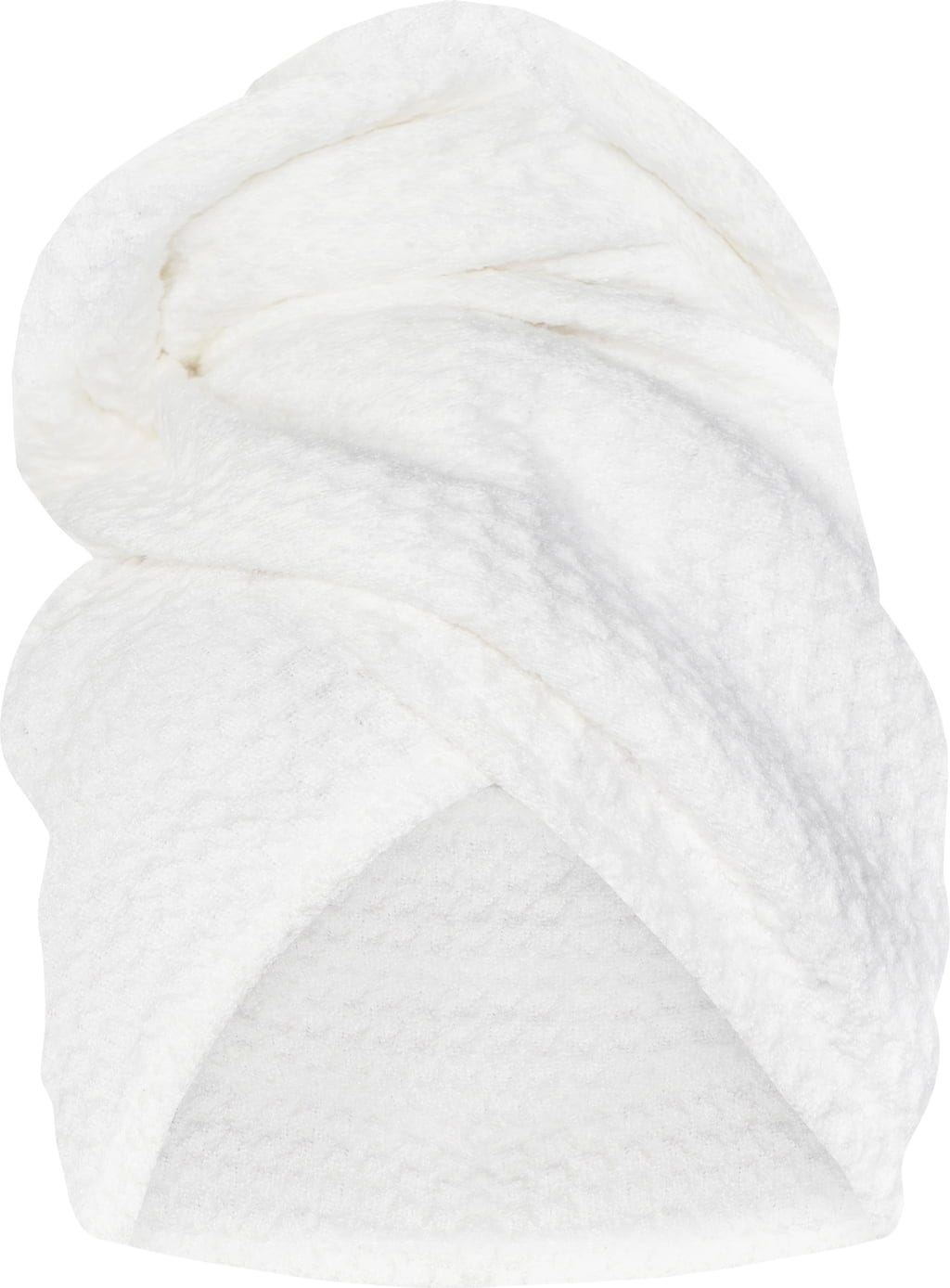 - Wikkel de handdoek om het hoofdhaar, draai voorzichtig en stop het losse uiteinde onder het elastiek.