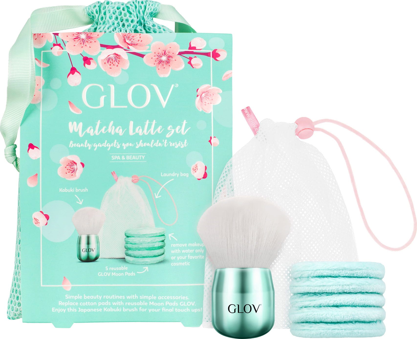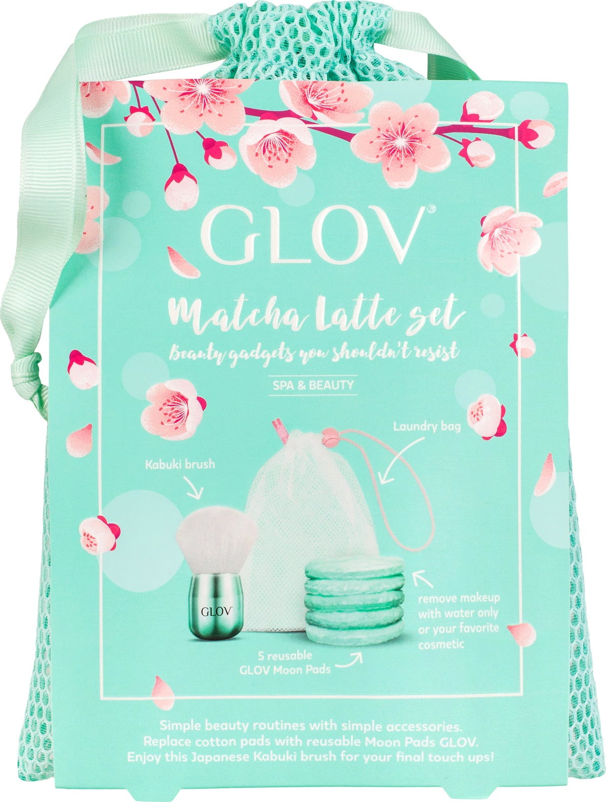 Deze set bevat een zachte Matcha Kabuki brush voor het aanbrengen van poeder, blush of foundation en 5 herbruikbare GLOV Moon Pads voor het verwijderen van make-up en make-up. De pads kunnen worden opgeborgen en gewassen in de bijgeleverde tas.
