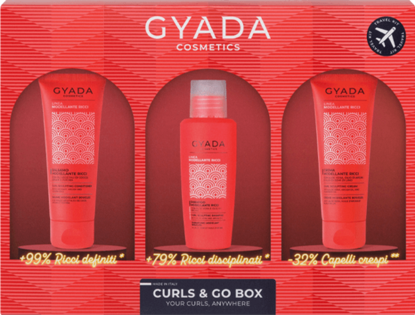 Het exclusieve CURLS & GO Set bevat drie producten voor krullenverzorging in reisformaat: een shampoo, een conditioner en een stylingcrème, die dankzij aloë vera, kokosolie en arganolie het haar hydrateren, ontwarren en pluizen voorkomen. Bovendien zorgen de producten in synergie voor definitie, zonder het haar te verzwaren.