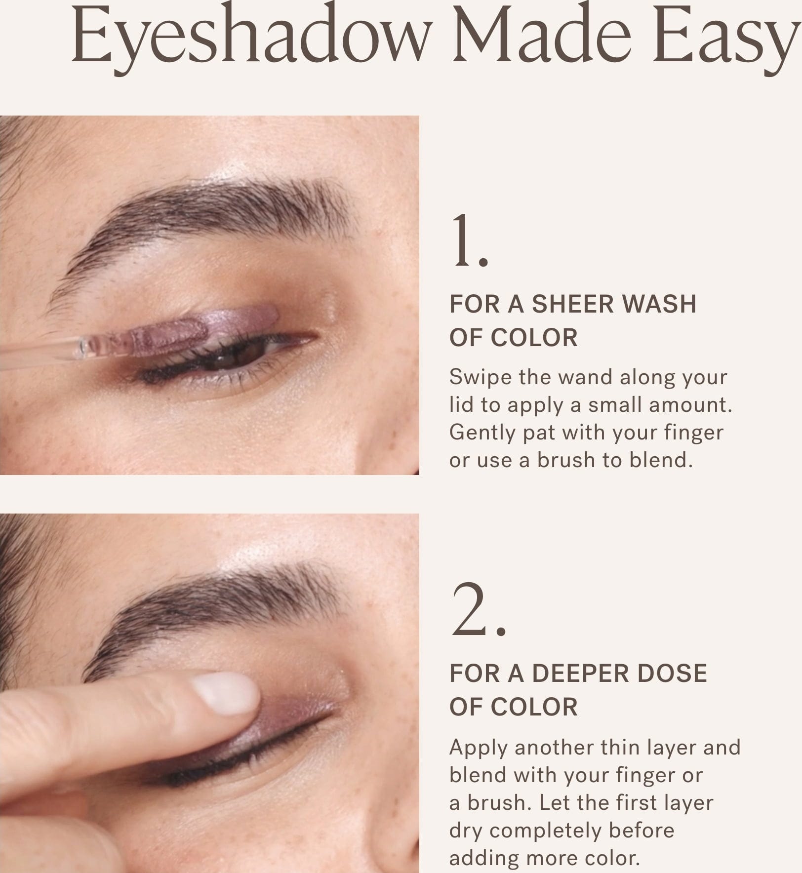De Liquid Powder Eye Tint droogt snel, dus we raden aan deze achtereenvolgens apart per ooglid aan te brengen.