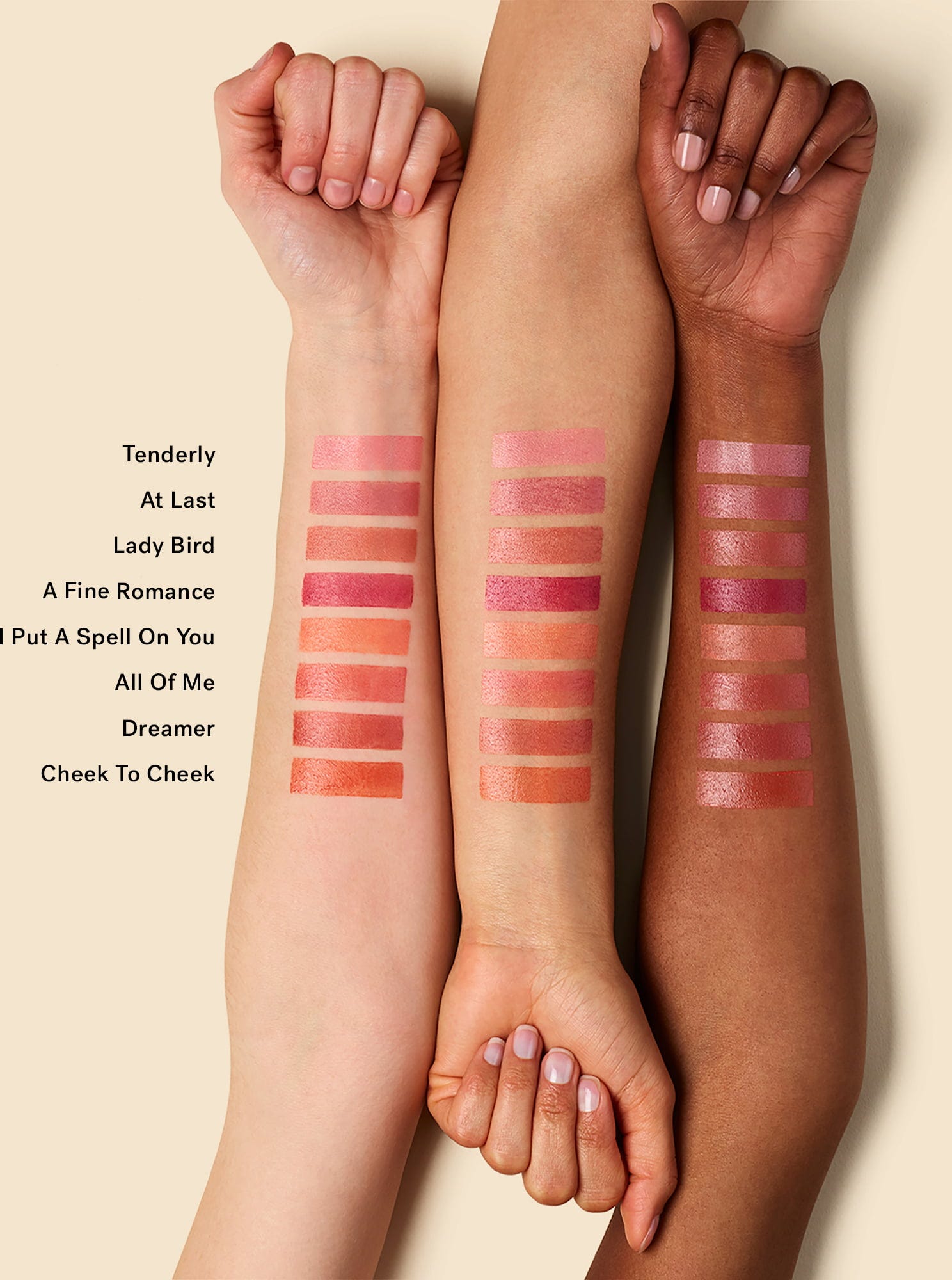 Praktisch 3-in-1-product: Lippenstift, blush en oogschaduw.