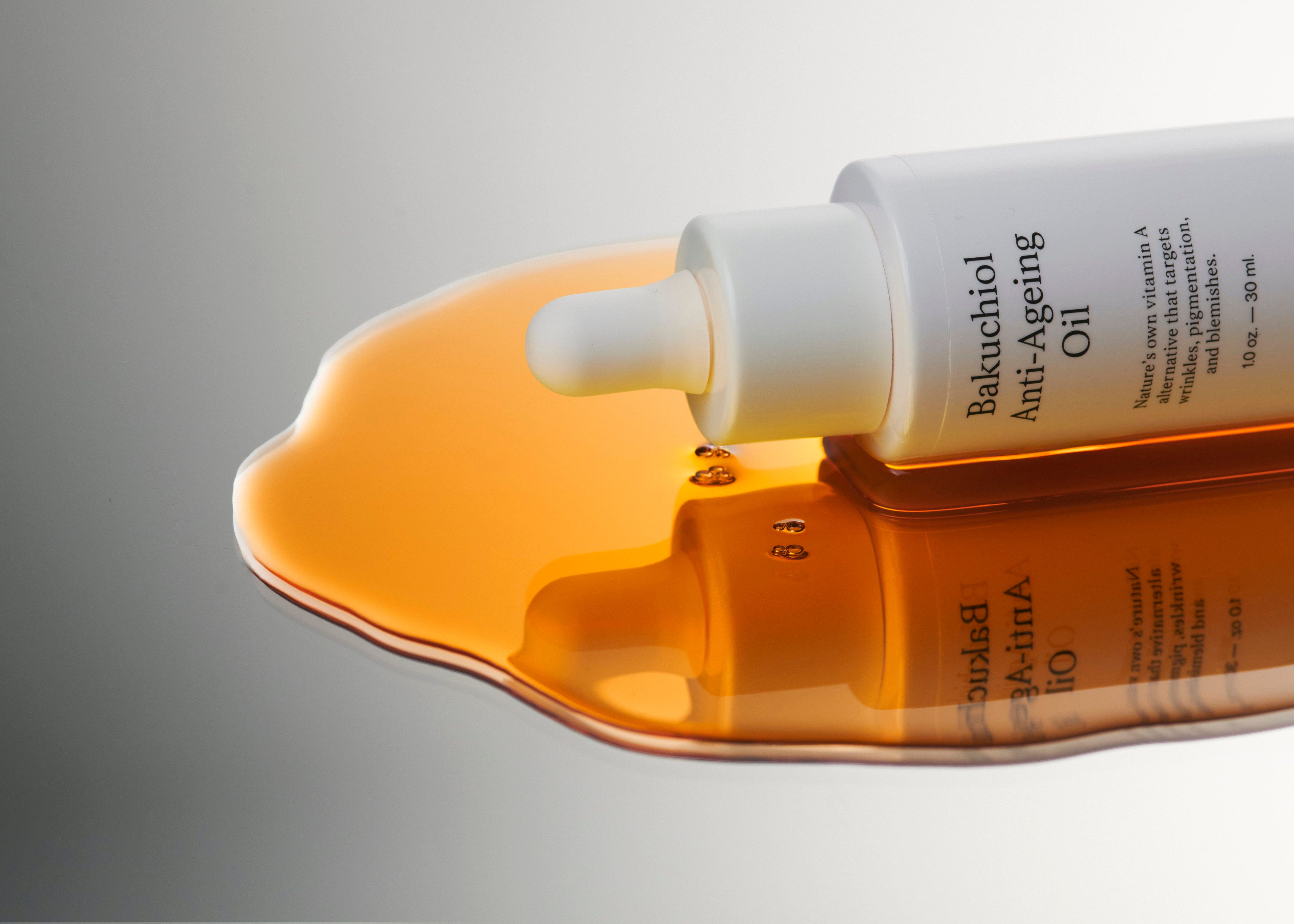 De Bakuchiol Anti-Ageing Olie van Jorgobé is een plantaardig alternatief voor retinol dat de huid gladder maakt, verstevigt en de teint egaliseert. Verrijkt met 1% bakuchiol, vitamine C (ascorbyl tetraisopalmitate), Q10 en astaxanthine, minimaliseert de olie rimpels, bestrijdt pigmentatie en beschermt tegen schade door vrije radicalen. Een voedende basis van druivenpit-, jojoba-, avocado-, zwarte bessenzaad-, teunisbloem- en rozenbottelolie zorgt ondertussen voor diepe hydratatie en langdurige vochtigheid, zonder vettig aan te voelen.