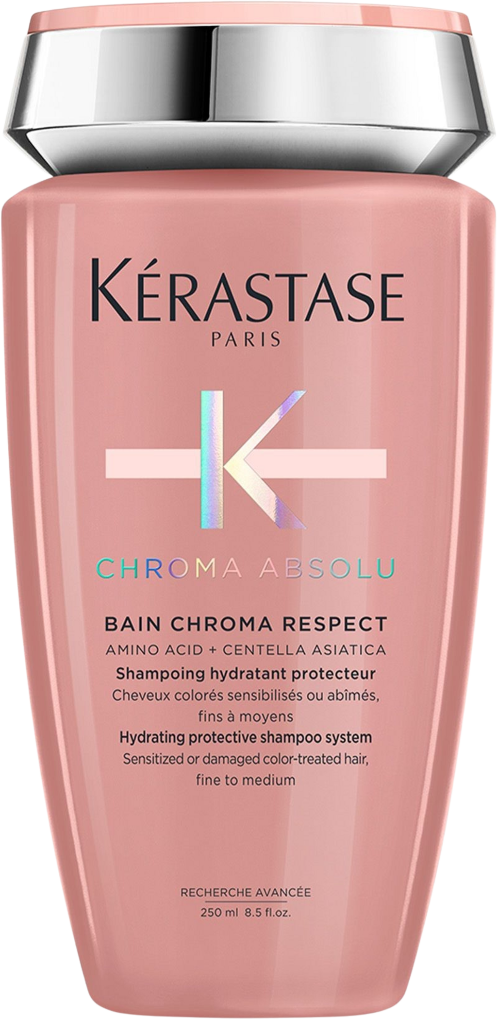 De Chroma Absolu Bain Chroma Respect van Kérastase is een hydraterende reiniger die is ontwikkeld voor beschadigd gekleurd haar. Deze sulfaatvrije formule reinigt en herstelt zachtjes het haaroppervlak voor extra glans en helderheid. Het regenereert de elasticiteit voor beter beheersbare lokken.