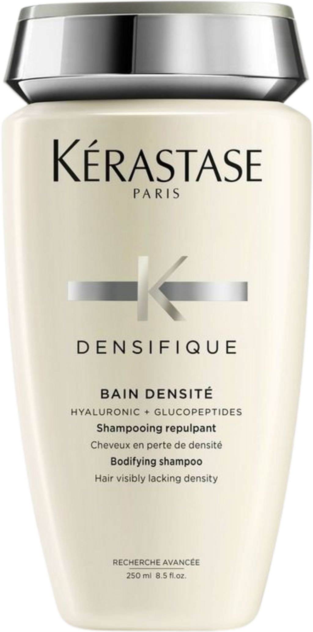 De shampoo Densifique Bain van Kérastase geeft vooral futloos en fijn haar nieuwe energie. Het laat het haar voller en veerkrachtiger aanvoelen. Hyaluronzuur hydrateert, terwijl ceramiden de haarvezel versterken. Naast reiniging verzacht de shampoo ook de haarstructuur.