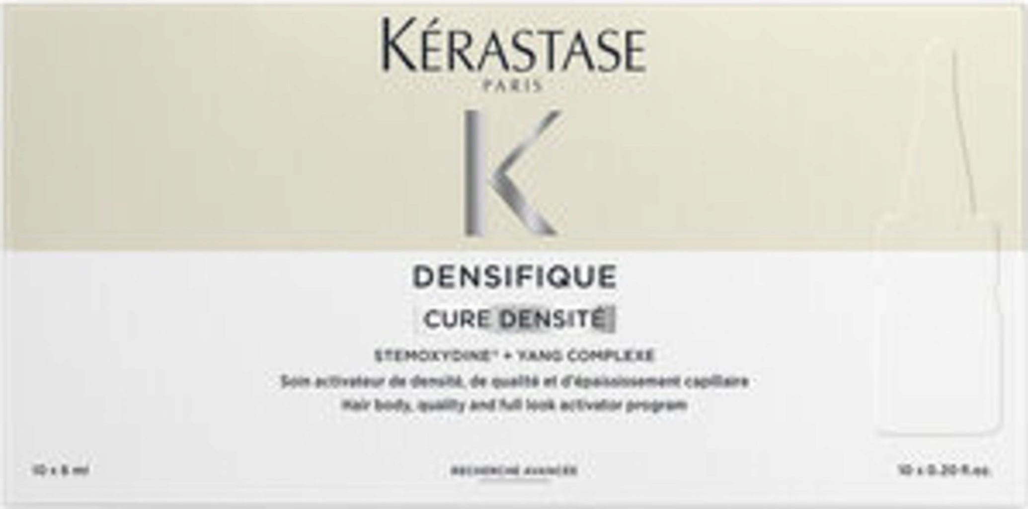 Densifique Kur Femme van Kérastase is een hoogwaardige verzorging voor vrouwen die last hebben van dunner wordend haar. De speciale ampulbehandeling helpt de haardichtheid te behouden en geeft het haar veerkracht en grip. De optimale combinatie van Stemoxydine met vitamine B3, B5 en B6 ondersteunt de activiteit van de haarzakjes voor voller haar.