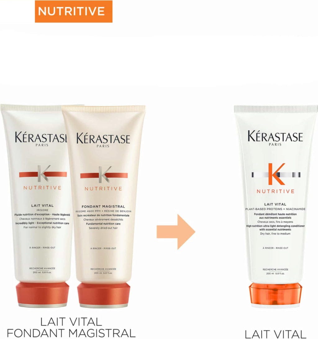 Nutritive Lait Vital van Kérastase is een vochtinbrengende conditioner met een ultralichte en ontwarrende formule die vooral goed is voor droog, fijn tot normaal haar.