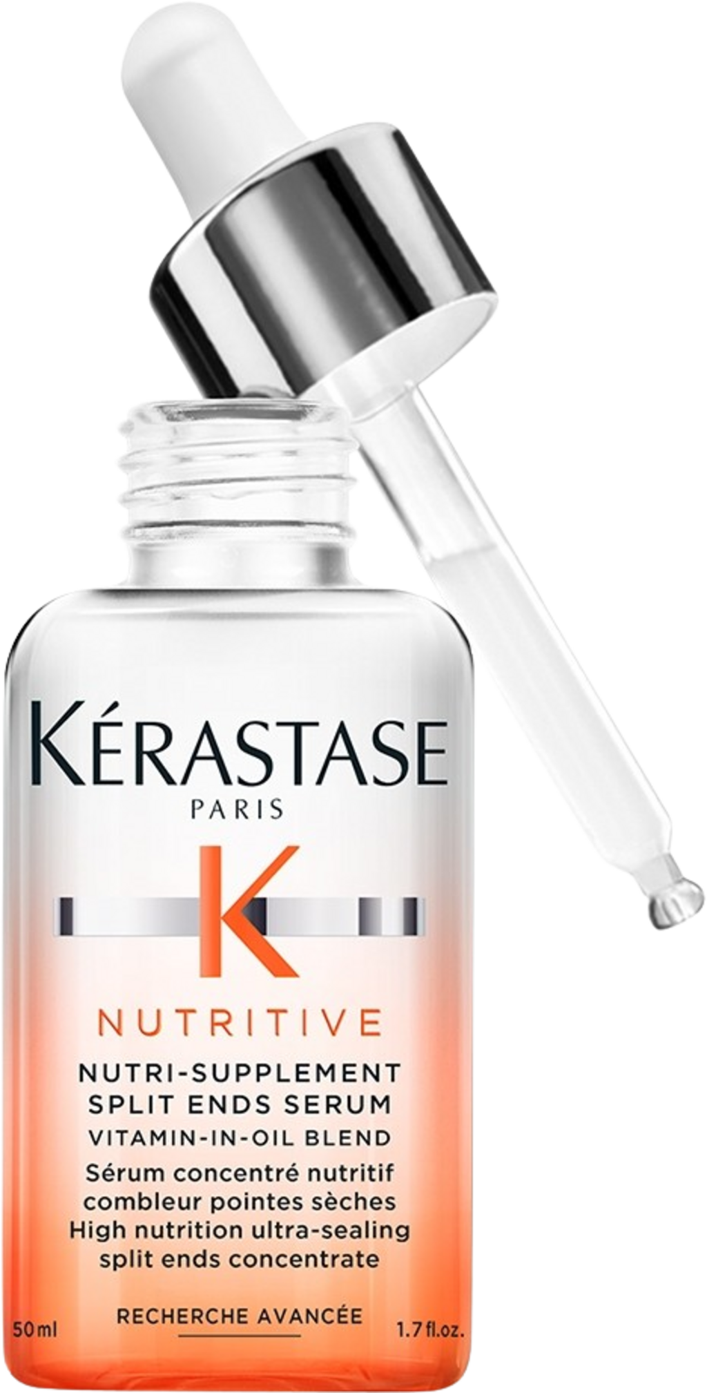 Het Nutritive Nutri-Supplement Split Ends Serum van Kérastase voorziet droge haarpunten van intens vocht en beschermt tegen chronische droogheid.