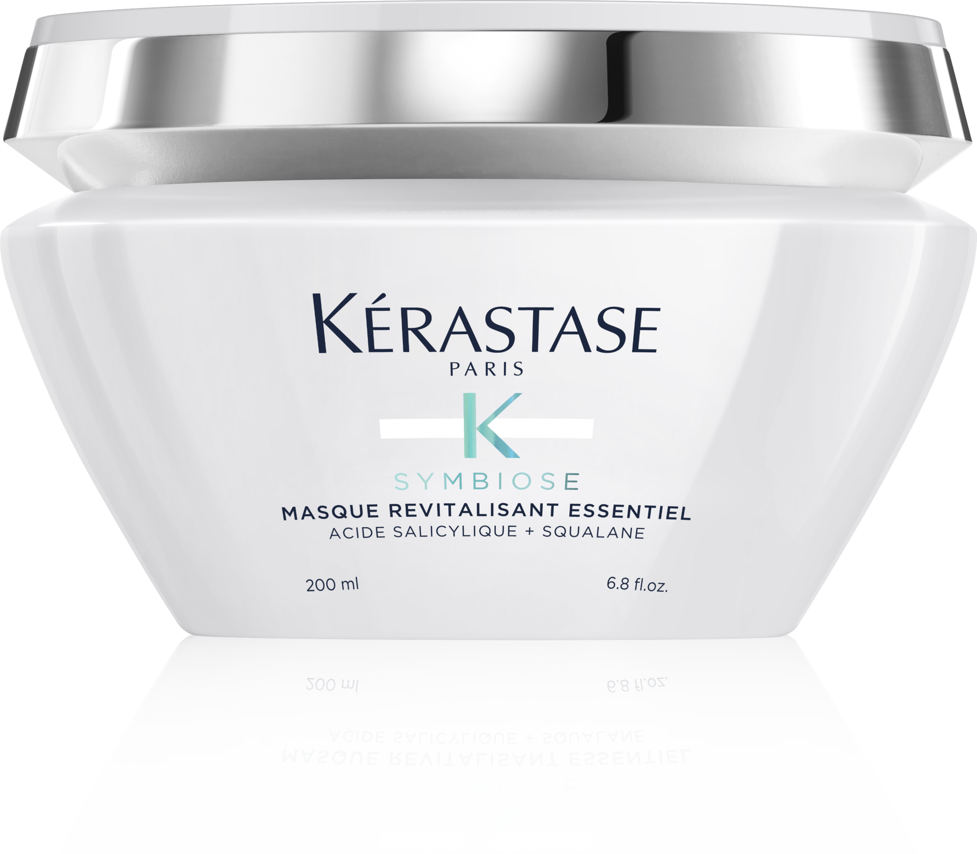 Symbiose Masque Revitalisant Essentiel van Kérastase beschermt en verzorgt beschadigd haar en de gevoelige hoofdhuid met neiging tot roos als een revitaliserend haarmasker.