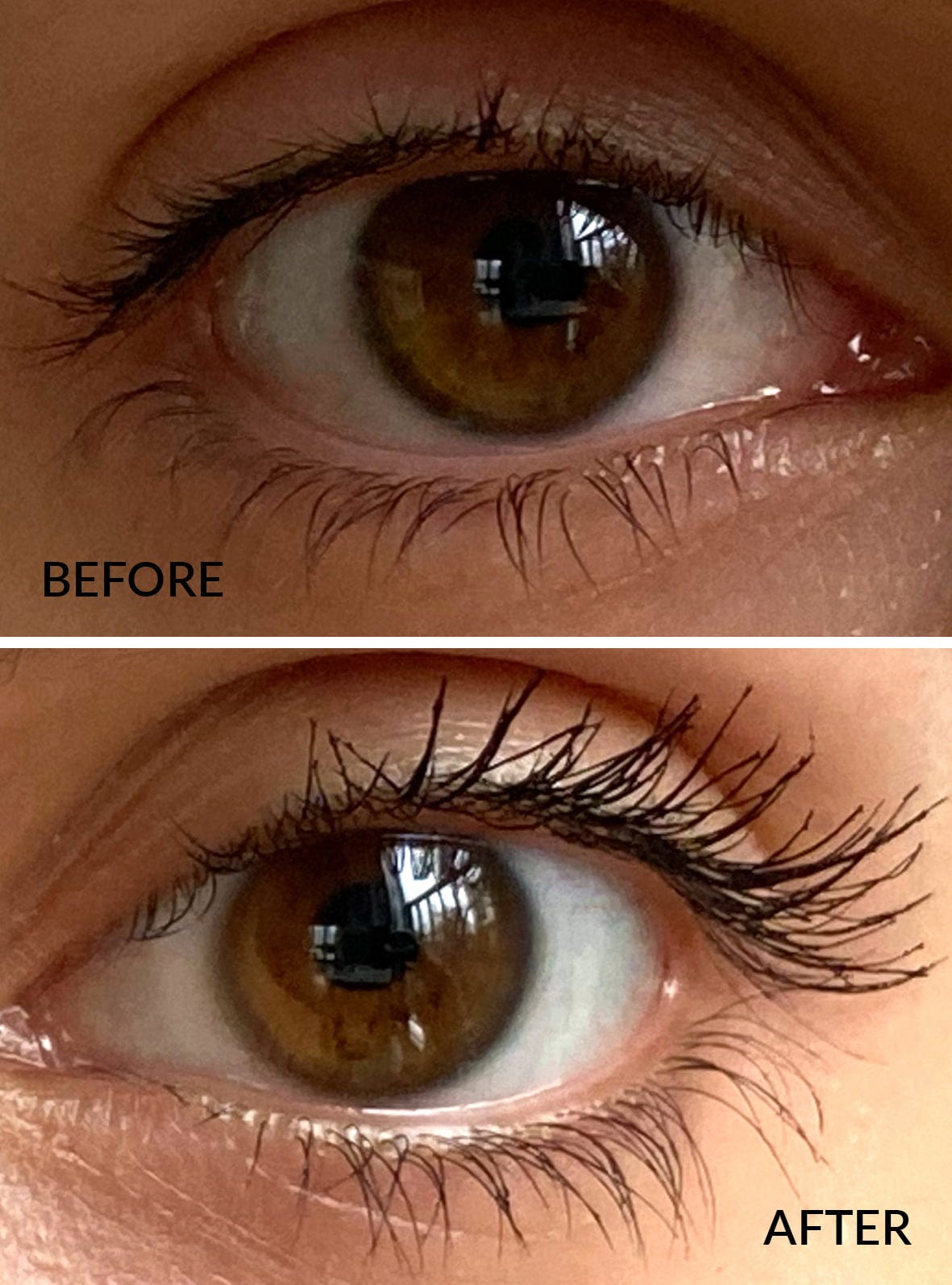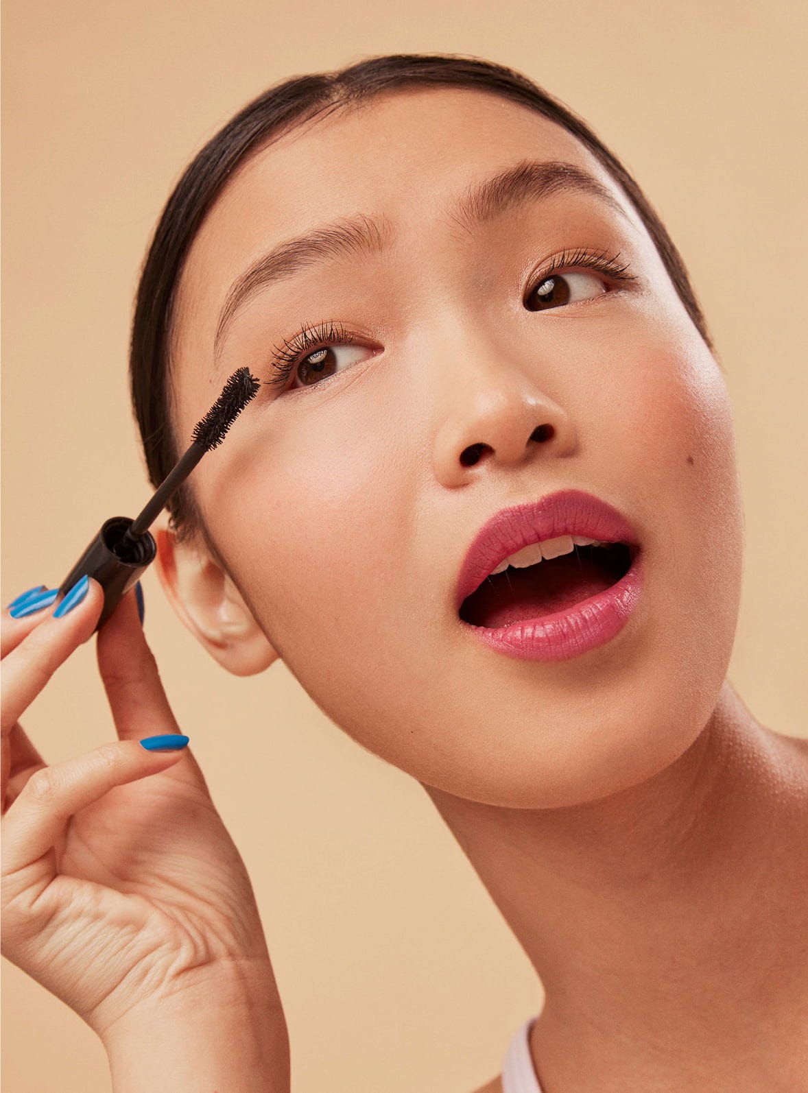 Plaats het borsteltje op de wimperlijn en leid het met kleine zigzagbewegingen naar de punt totdat alle wimpers zijn bedekt. Voor bijzonder intens gekleurde wimpers herhaal je het proces na een korte droogtijd.