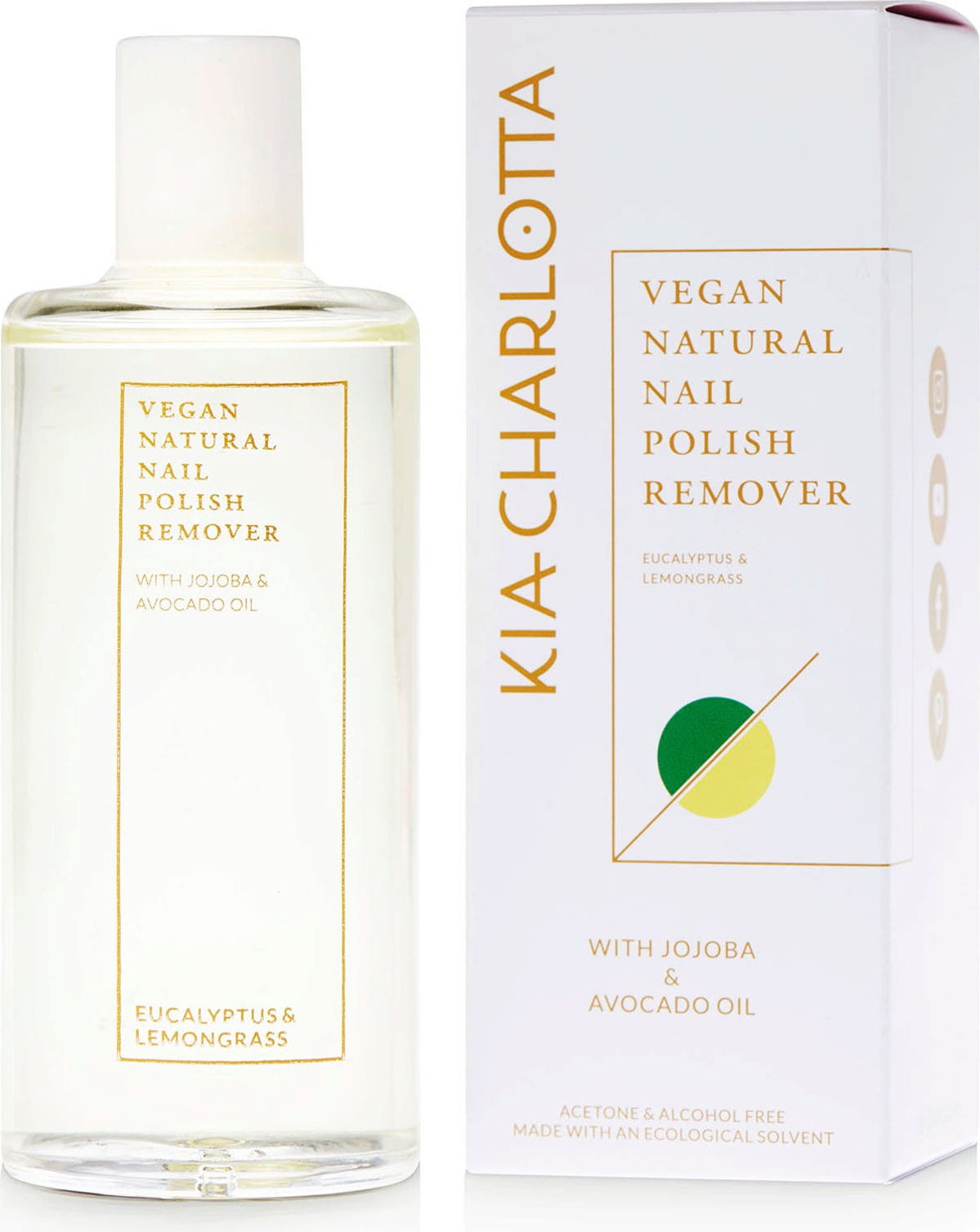 Deze vegan nagellakremover van Kia Charlotta bevat geen aceton of alcohol en is gemaakt met een ecologisch oplosmiddel. Het verwijdert effectief alle nagellak.